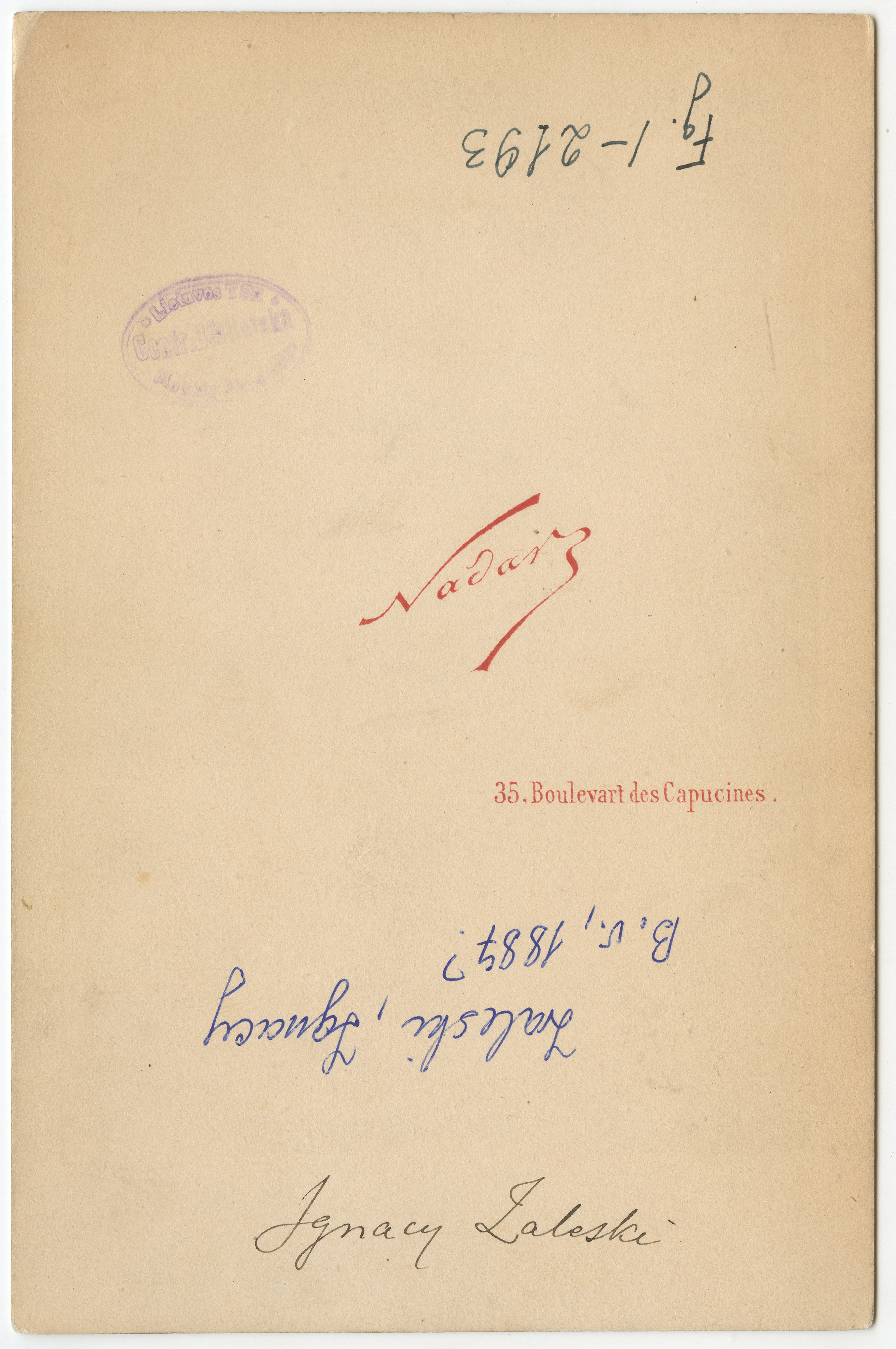 Ignacy Zaleski portretas / Nadar, [Paris] : [leidėjas nenustatytas], [188-?], 1 fotografija : tonuota ; 14 x 9.2 ; 17 x 11.1 cm.