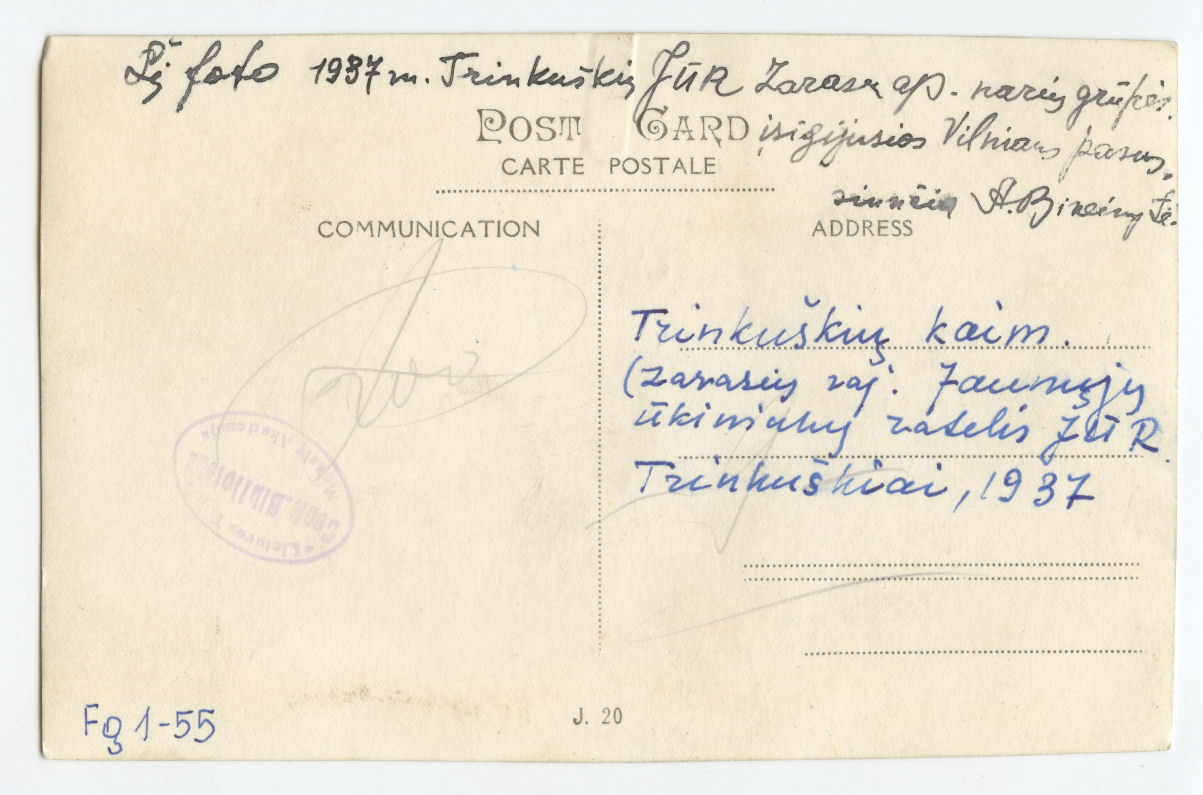 [Trinkuškių kaimo Jaunųjų ūkininkų ratelio (JŪR) narių grupė, įsigijusi Vilniaus pasus]. [S.l.] : [s.n.], [1937], 1 fotogr.