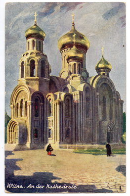Wilna. An der Kathedrale : [Šv. Michailo ir Konstantino cerkvė], Berlin : Verlag Kahan & Co., [1915-1916], 1 atvirukas : spalvotas ; 14 x 9 cm.