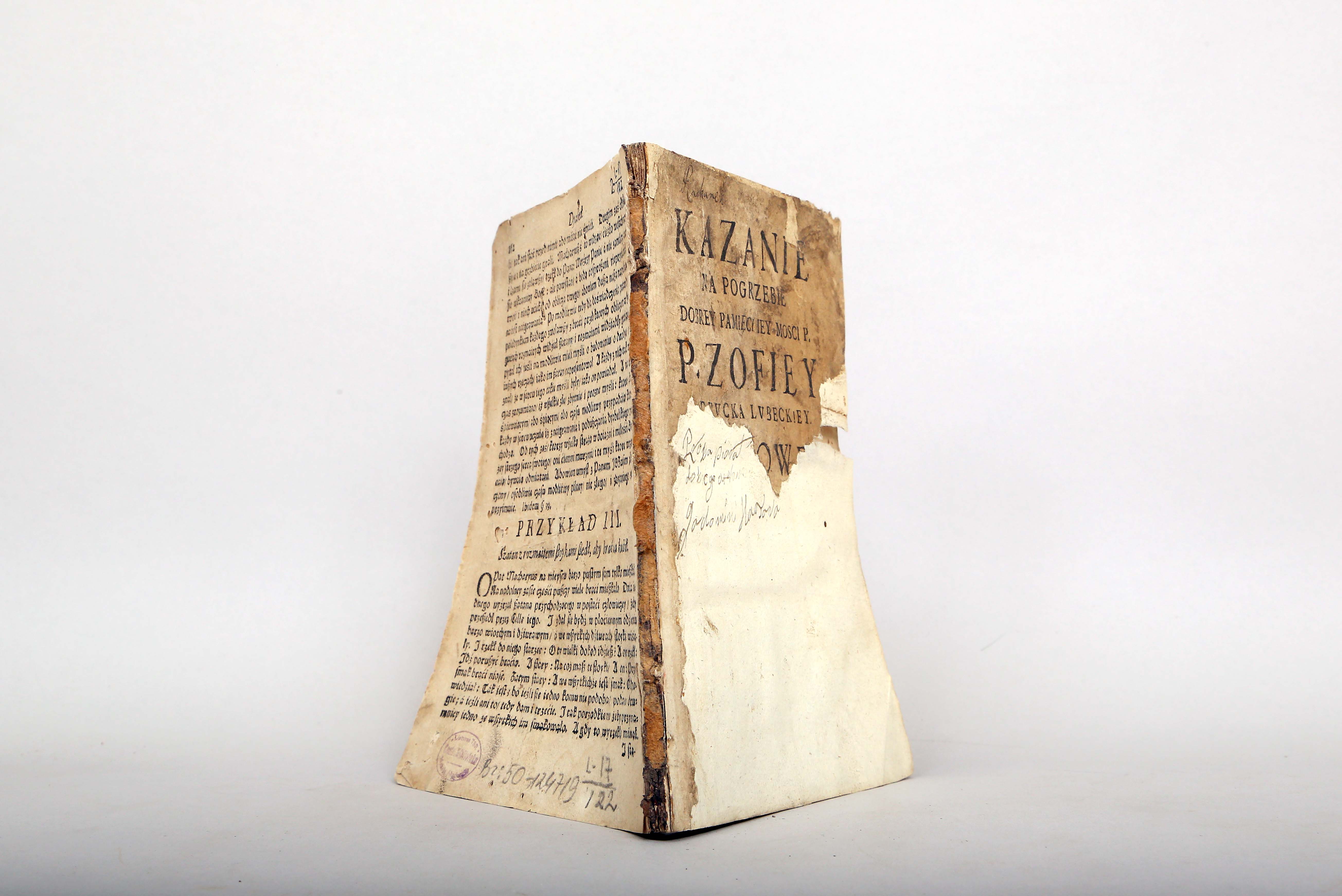 Įrišas knygos [Ginkevičius, Mykolas. Kazanie na pogrzebie … Zofii z Drucka Lubeckiey Pawłowy Łaskowskiey [...]. [Wilno] : w drukarni Akademii Wileńskiey S.I., 1649.]