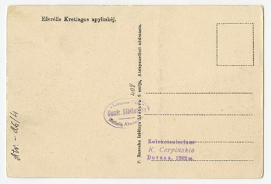 Ežerėlis Kretingos apylinkėj, Kaunas : P. Ruseckas, 1935-1939, 1 atvirukas : tonuotas ; 9.1 x 13.5 cm.