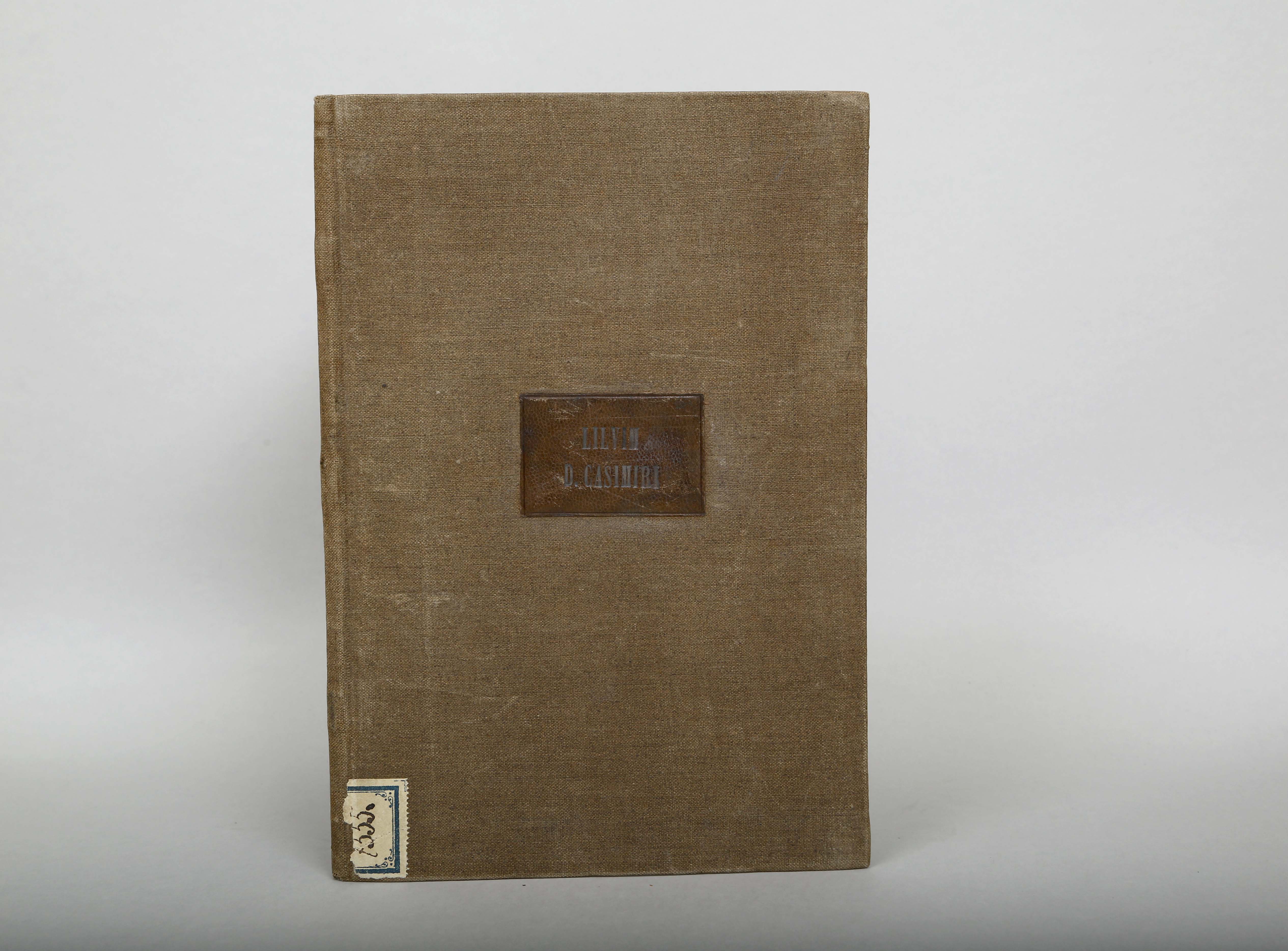 Įrišas: vientisas. Medžiagos: vienspalvė tekstilė. Viršelio viršutinėje dalyje – odinė prieklija su antrašte: LILIUM D. CASIMIRI.