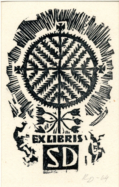 Ex libris S. D. [Kaunas, 1964]. Lino raižinys.