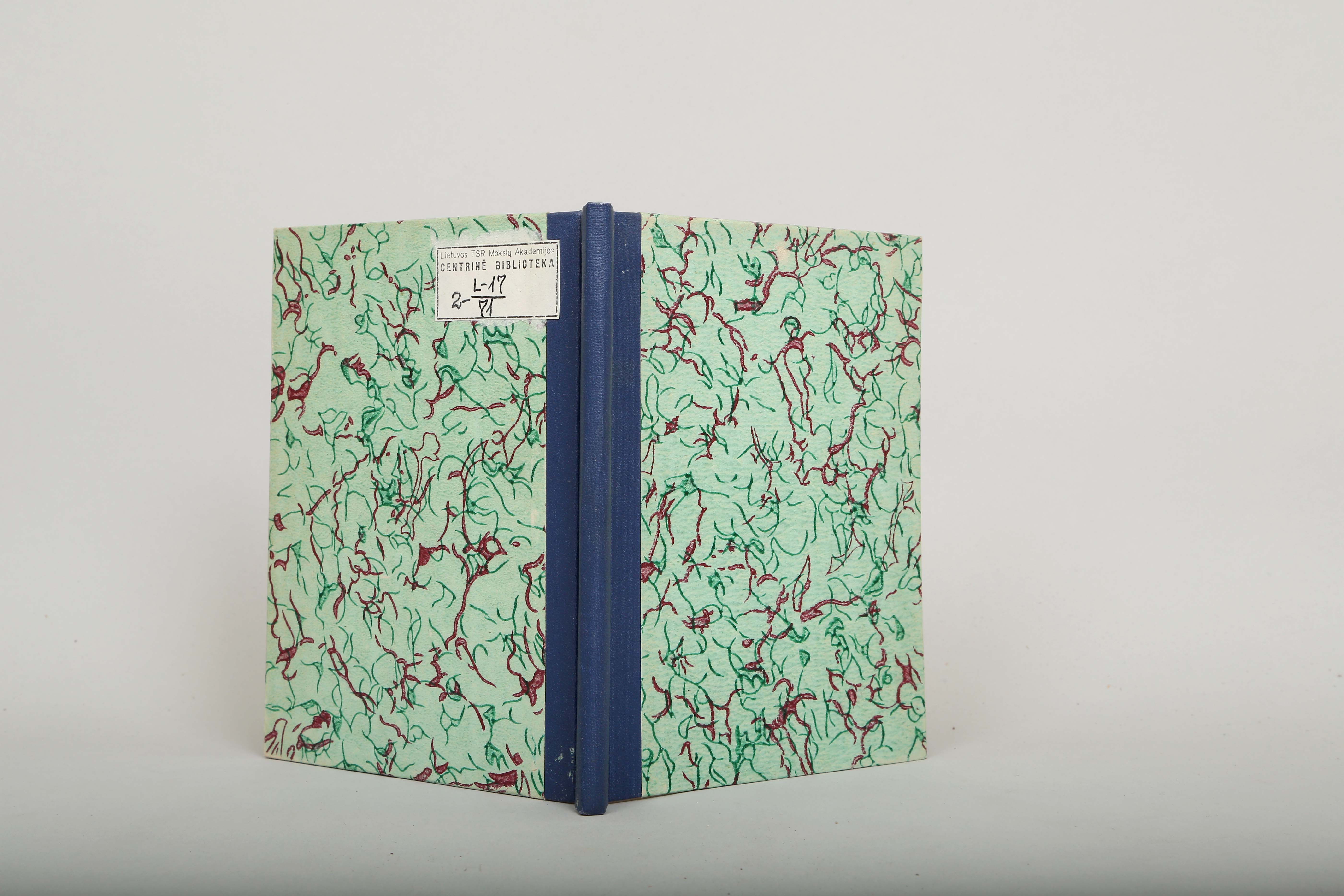 Įrišas: sudėtinis. Medžiagos: lederinas, margintas popierius.