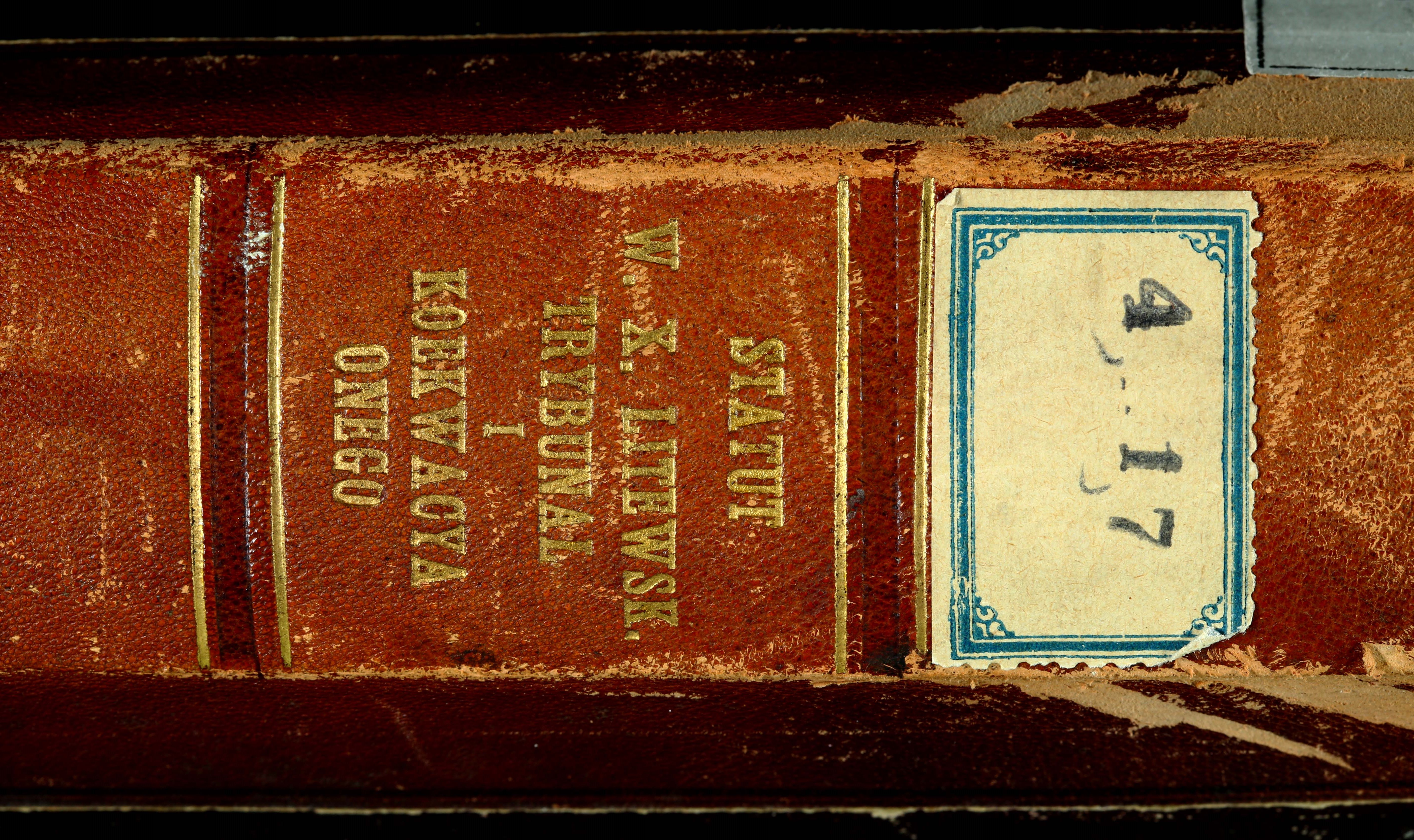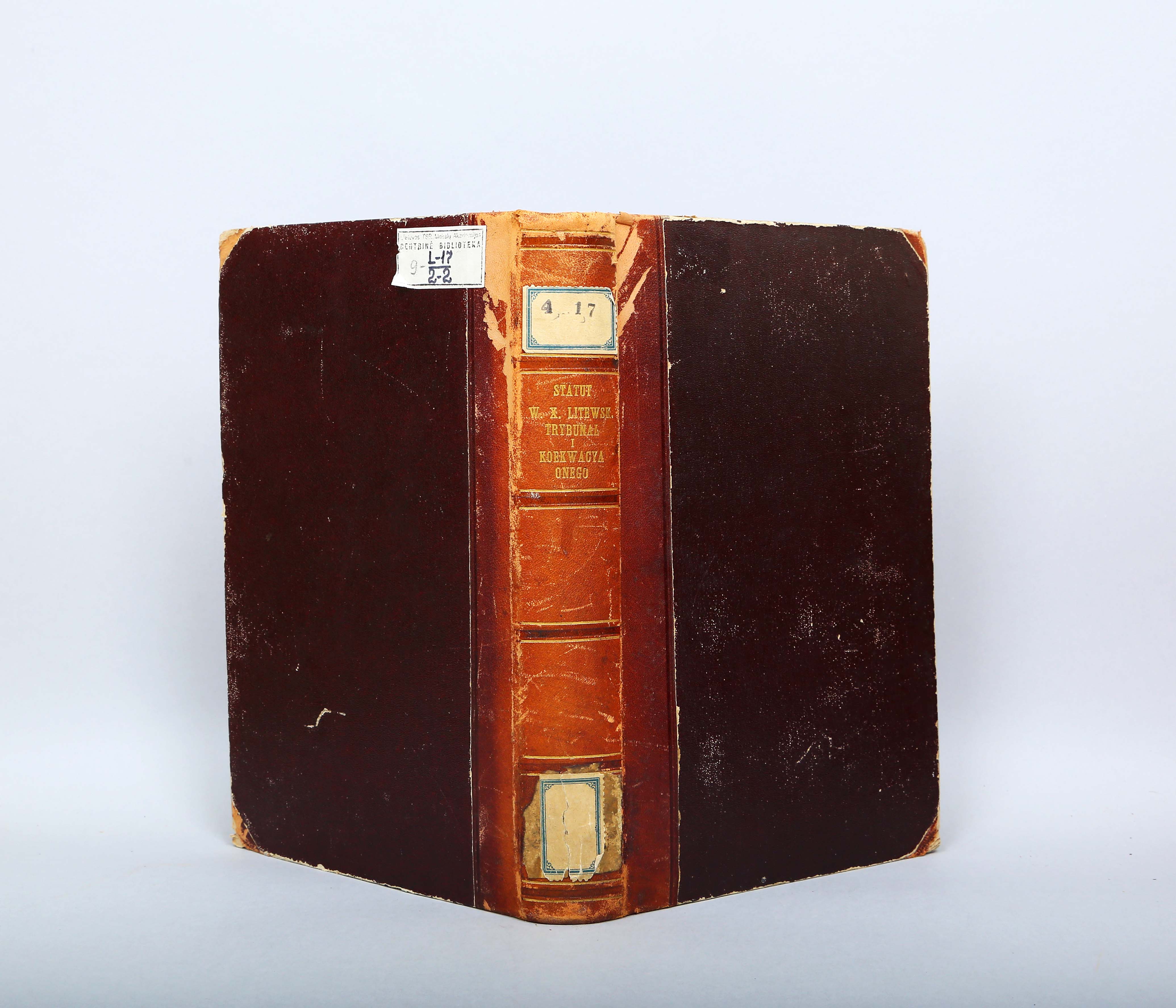 Įrišas knygos [Statut Wielkiego Xięstwa Litewskiego, naprzod, za naiśnieyszego [...]. W Wilnie : w drukarni Akademiey Societatis Iesu, 1693–[1694].]