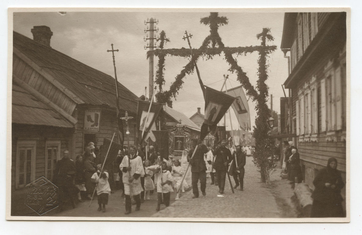 [Religinė procesija miestelio gatvėse], M. Zapinś. Rīgā : M. Zapinś, [1936], 3 fotogr.