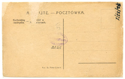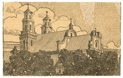 Kurtuvėnų bažnyčia = [Kos]ciół w [Kurtu]wianach / rys. St. Plater-Zyberk, Lietuva : St. Plater-Zyberk, 1908-1910, 1 atvirukas : tonuotas ; 9.1 x 14.6 cm.
