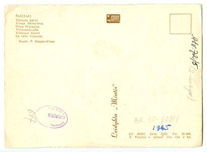 Šiauliai : Vytauto gatvė / nuotr. P. Karpavičiaus, Vilnius : "Mintis", 1965, 1 spalvotas atvirukas ; 10.3 x 14.2 cm.
