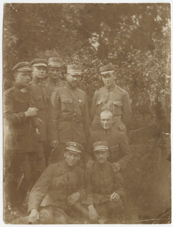 Lietuvos kariuomenės Panevėžio atskirojo bataliono karininkai su instruktoriumi M.Katche, [Lietuva], [1919], 1 fotografija ; 16 x 12 cm.