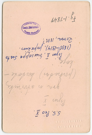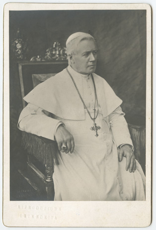 Pijus X : [popiežiaus portretas], [Roma] : [leidėjas nenustatytas], [1914], 1 fotografija : nespalvota ; 14 x 10 ; 16.3 x 10.9 cm.
