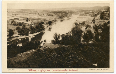 Widok z góry na przedmiescie Antokol = Wilna. Antokovorstadt, [Wilno] : Verlag M. & G., [1914-1918], 1 atvirukas : tonuotas ; 9 x 14 cm.