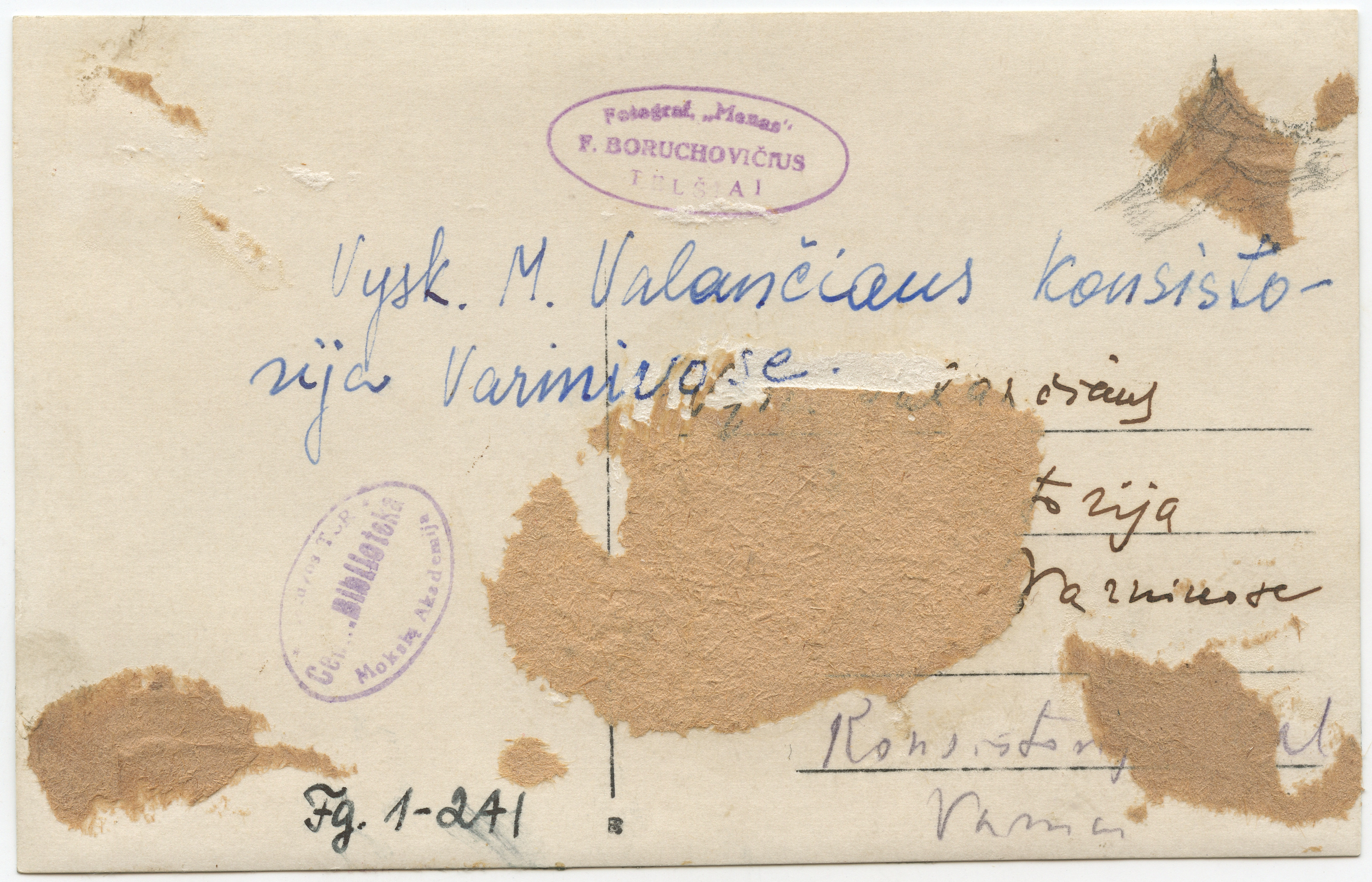 Vyskupijos konsistorijos namai Varniuose (dab. M.Valančiaus gatvėje) / fotograf. F.Boruchovičius, Telšiai : „Menas“, [1929-1932], 1 fotografija : nespalvota ; 8.7 x 13.7 cm.