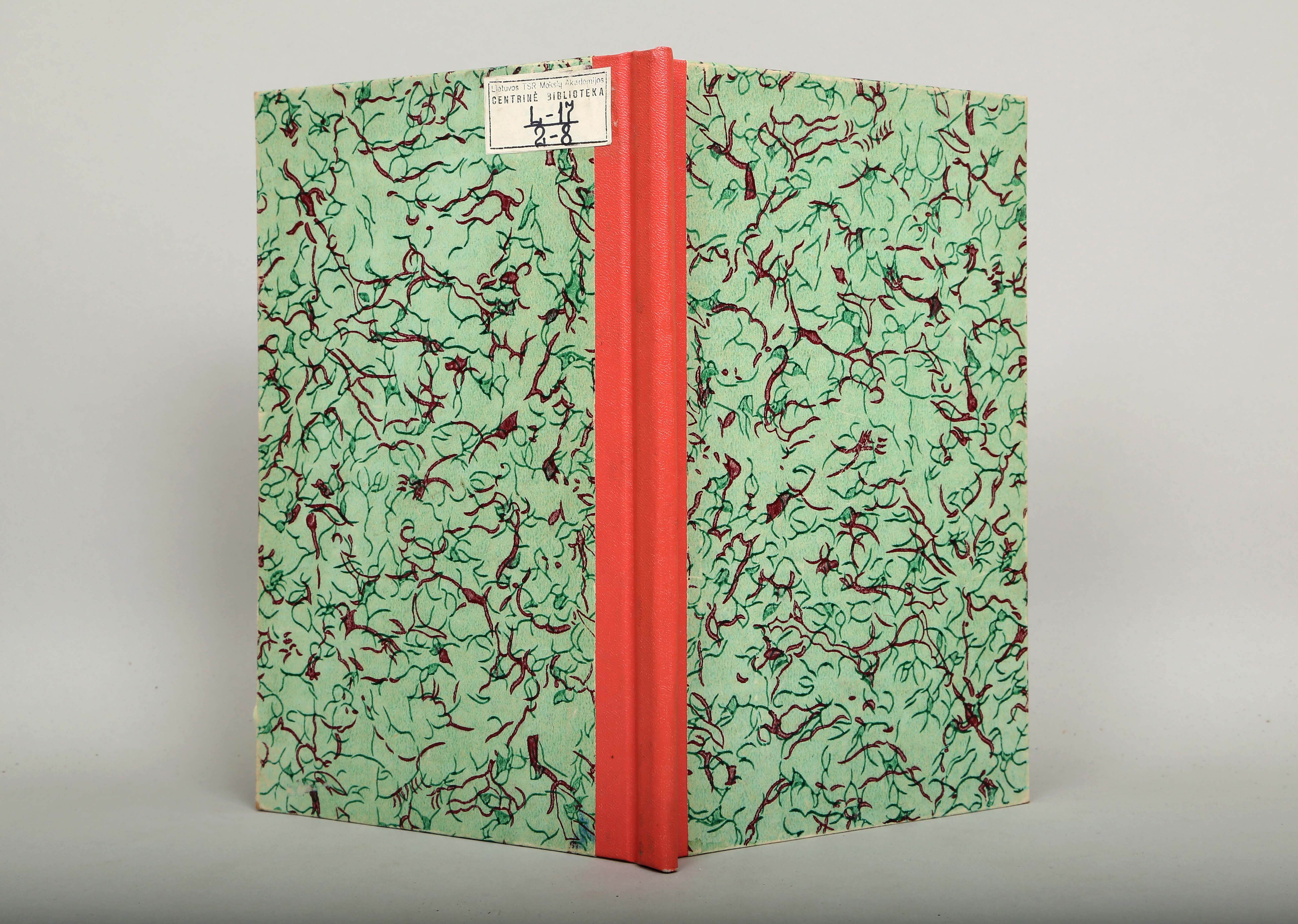 Įrišas: sudėtinis. Medžiagos: lederinas, margintas popierius.