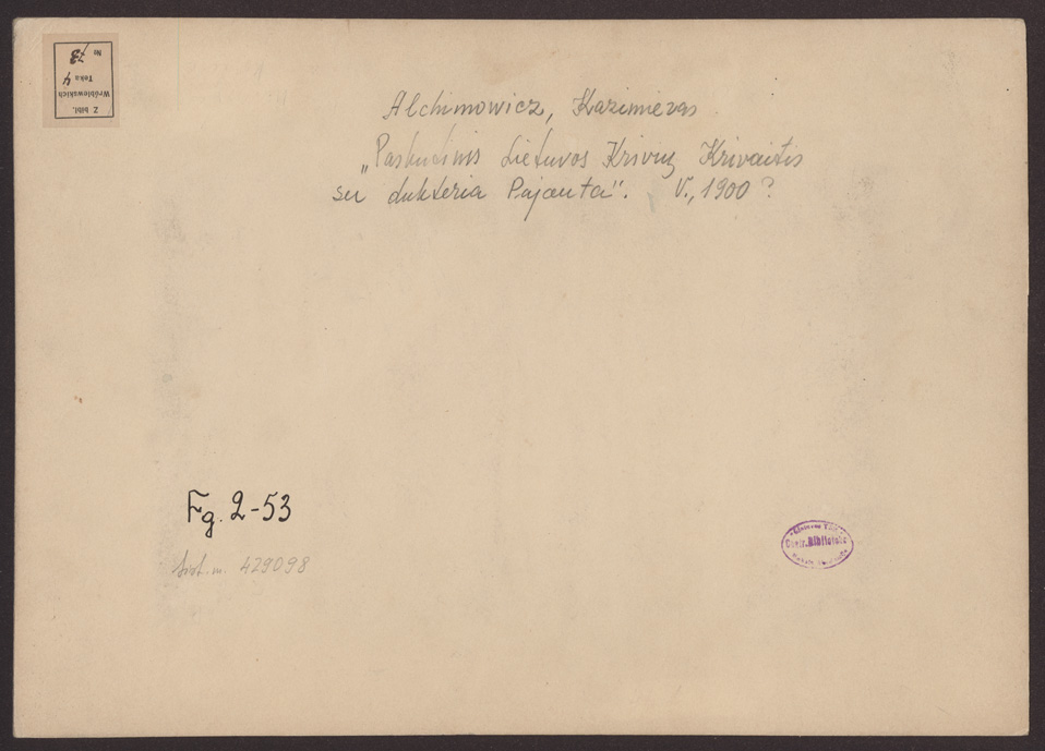 „Paskutinis Lietuvos krivių krivaitis su dukterimi Pajauta“ : [dailininkas Kazimieras Alchimavičius : paveikslo fotoreprodukcija], [Publikavimo vieta nenustatyta] : [leidėjas nenustatytas], [19--?], 1 fotografija : nespalvota ; 15.3 x 25 ; 24 x 33.7 cm.