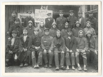 Lietuvos kariuomenės kariai, grįžę iš lenkų nelaisvės, belaisvių grąžinimo punkte Kaune : [grupinė fotografija]