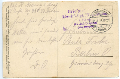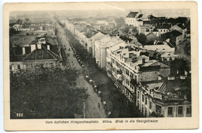 Vom östlichen Kriegsschauplatz : Wilna. Blick in die Georgstrasse / Originalaufnahme vom Hofphotograph A.Kühlewindt, offizieller Kriegsphotograph, Königsberg i Pr. : Verlag Gebrüder Hochland, [1914-1918], 1 atvirukas ; 9.2 x 14 cm.