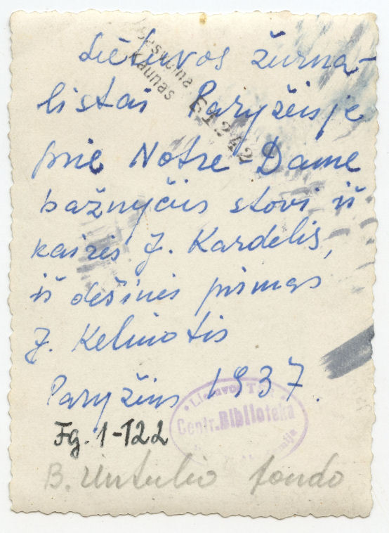 [Lietuvos žurnalistai Paryžiuje prie Dievo Motinos katedros]. [Kaunas] : [Ilja Jasvoinas], [193-?], 1 fotogr.