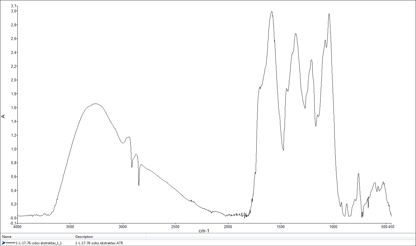 Mikrocheminiai ir instrumentiniai tyrimai: pH - 4,8; Geležies chlorido testas - teigiamas; Vanilino testas - neigiamas; Nitritinės rūgšties testas - teigiamas; Rodanino testas - teigiamas; Taninų klasė - Hidrolizuojami taninai; ATR-FTIR spektroskopija - Galo ir elago taninai.