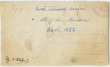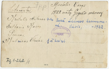 Lietuvos kariuomenės 7-ojo pėstininkų pulko leitenantai užsiėmimų ir poilsio metu, Vievyje 1922 metais, Vievis, [1922], 2 fotografijos ; 8.3 x 13.3 ; 13.5 x 8 cm.