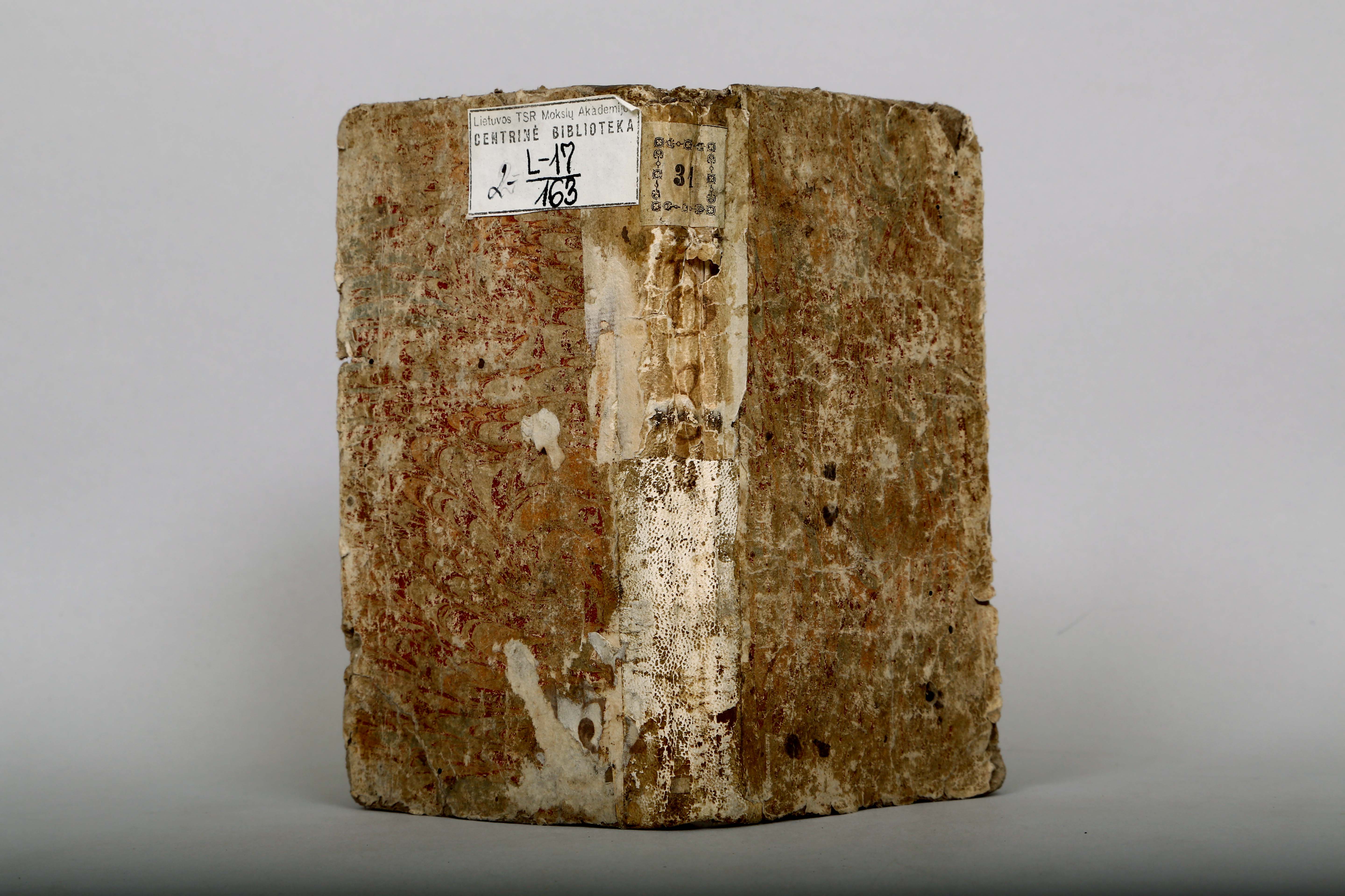 Įrišas: sudėtinis. Medžiagos: ožkenos oda, popierius. Popieriaus dekoro technika – marginta plūduriuojančiais dažais.