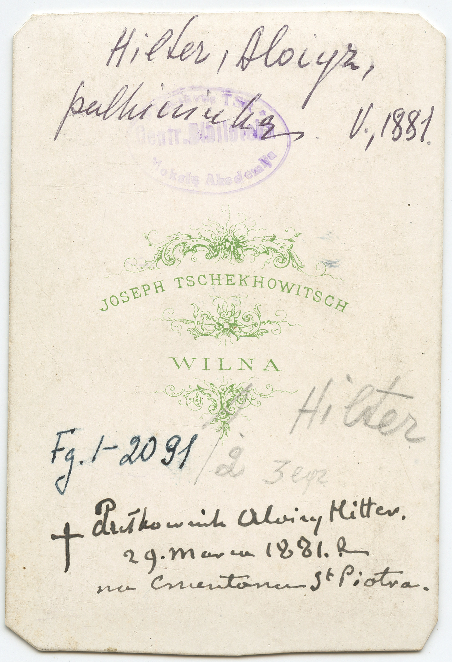 Pulkininkas Aloizy Hitter : [portretas] / Joseph Tschekchowitsch, Wilna : [Atelier de photographie] Joseph Tschekchowitsch, [1880], 4 fotografijos : tonuotos ; 8.8 x 5.5 cm ; 10.6 x 6.4 cm.