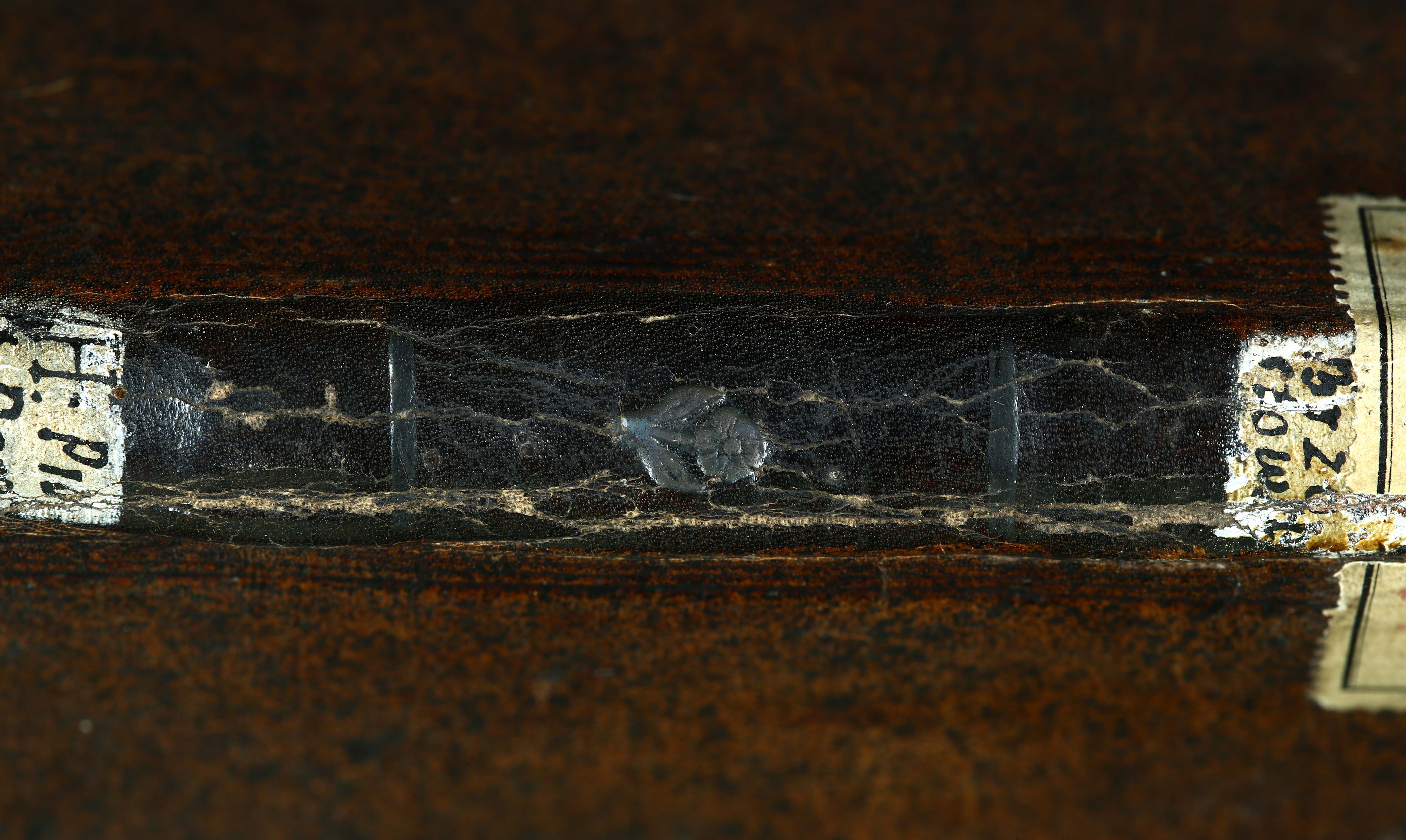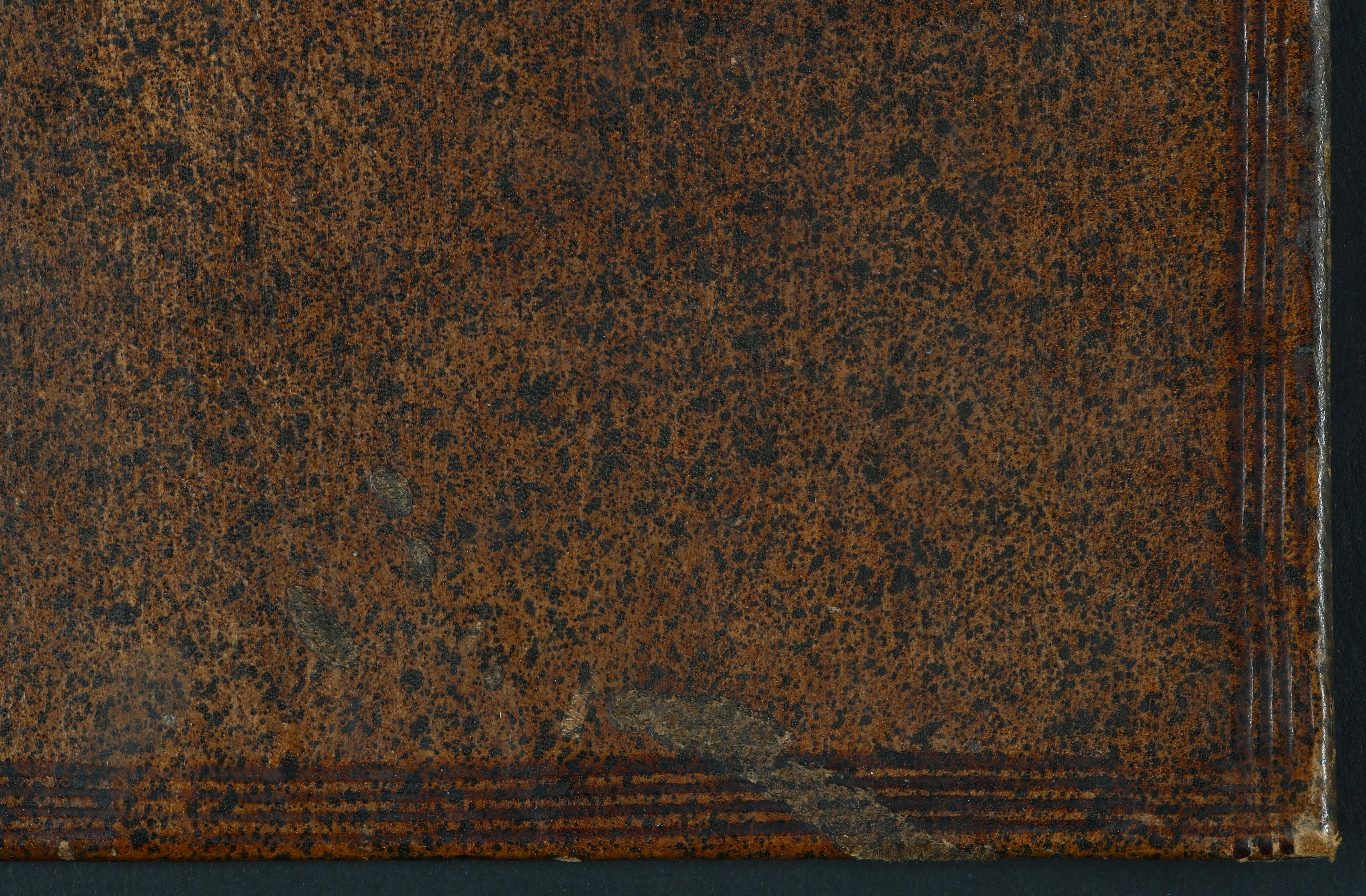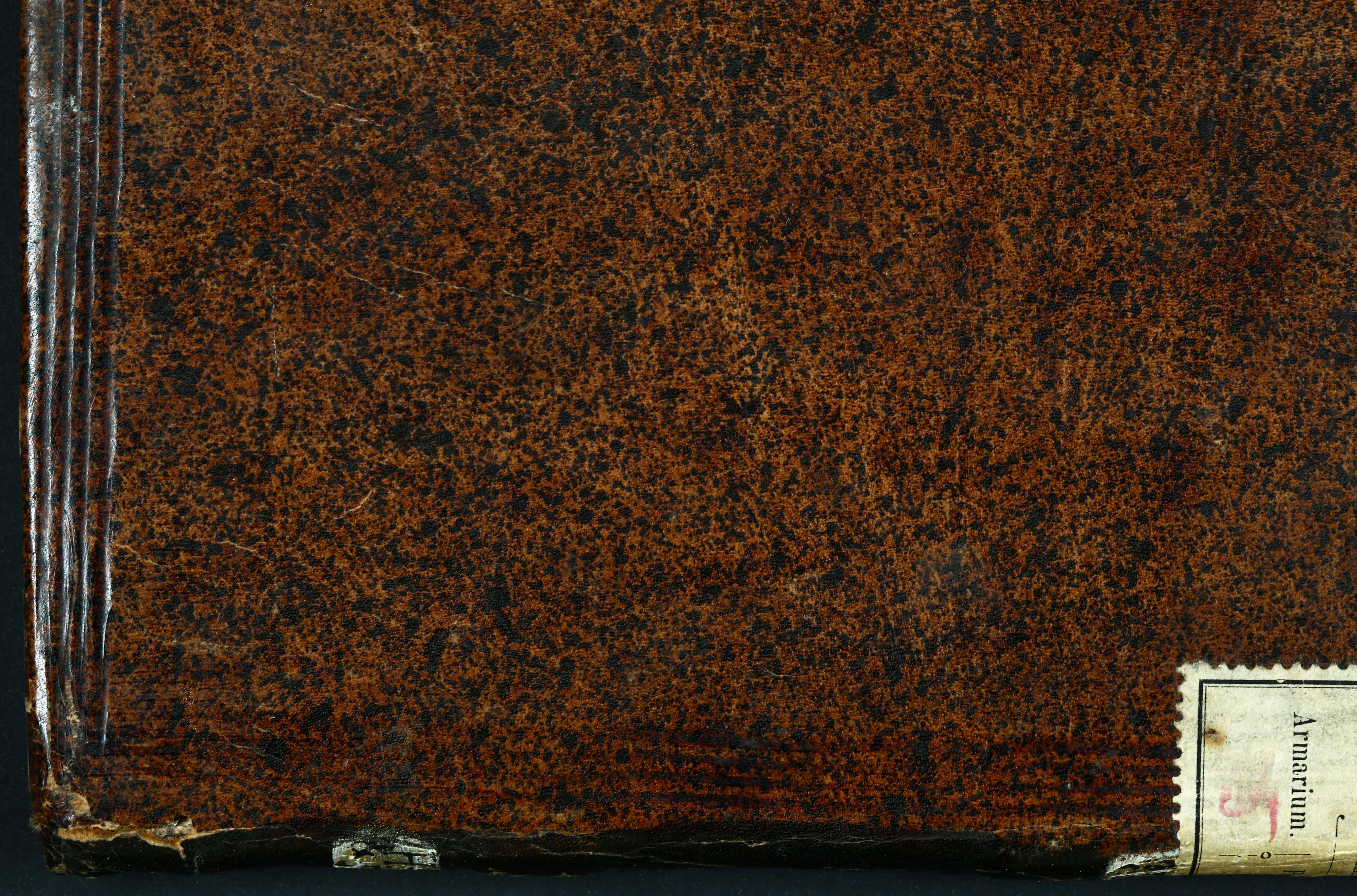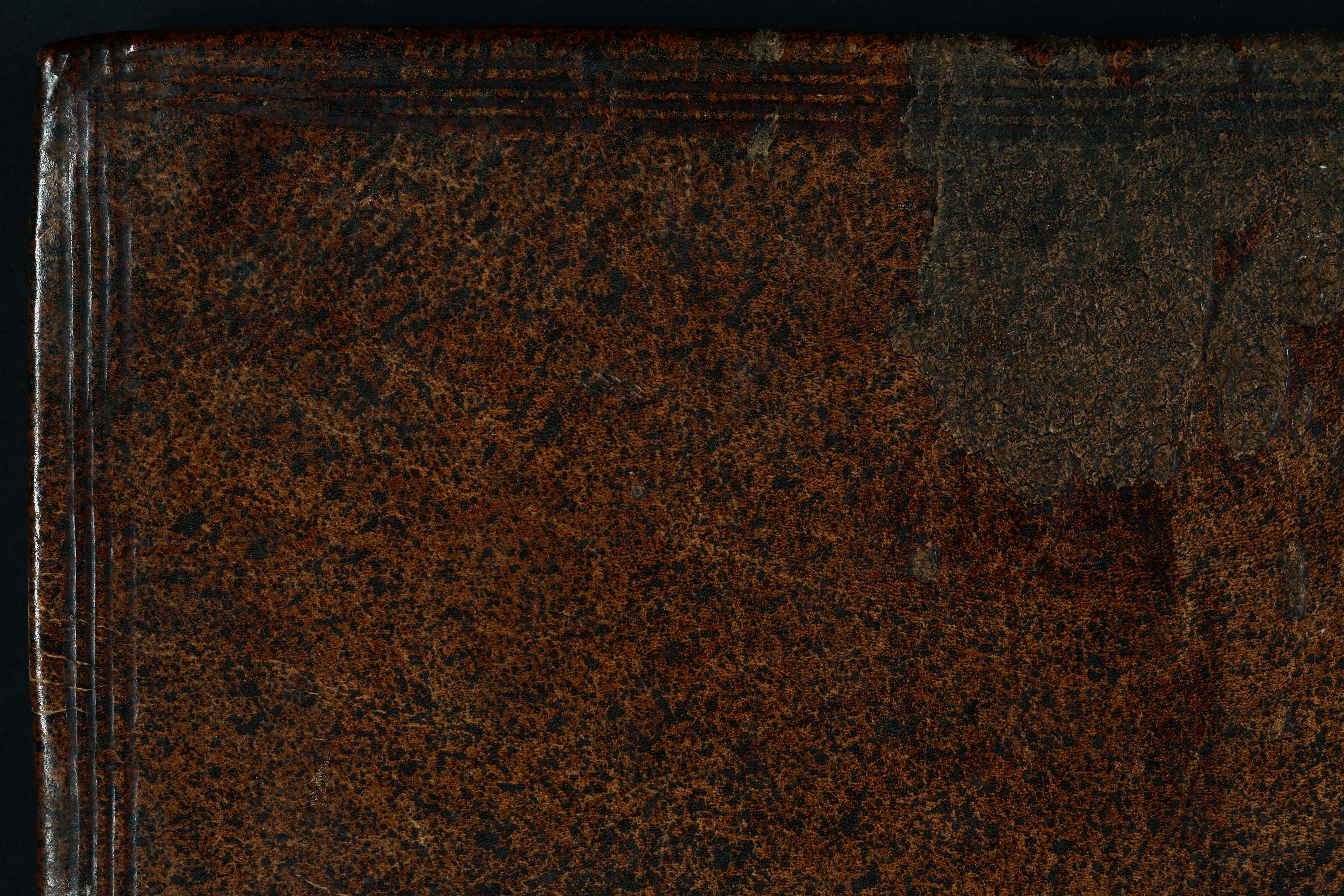 Įrišas: vientisas. Medžiaga: jautenos oda. Viršelio dekoro technika – marginimas taškymo metodu. Viršelio nugarėlė tamsinta. Įspaudai: viršelio kraštinėse ir ties viršelio nugarėle – keturių brėžių apvadas. Viršelio nugarėlėje – vienarūšiai spaudai. Antraštiniai duomenys rašyti balta spalva dažytame fone. Įrašai neįskaitomi.