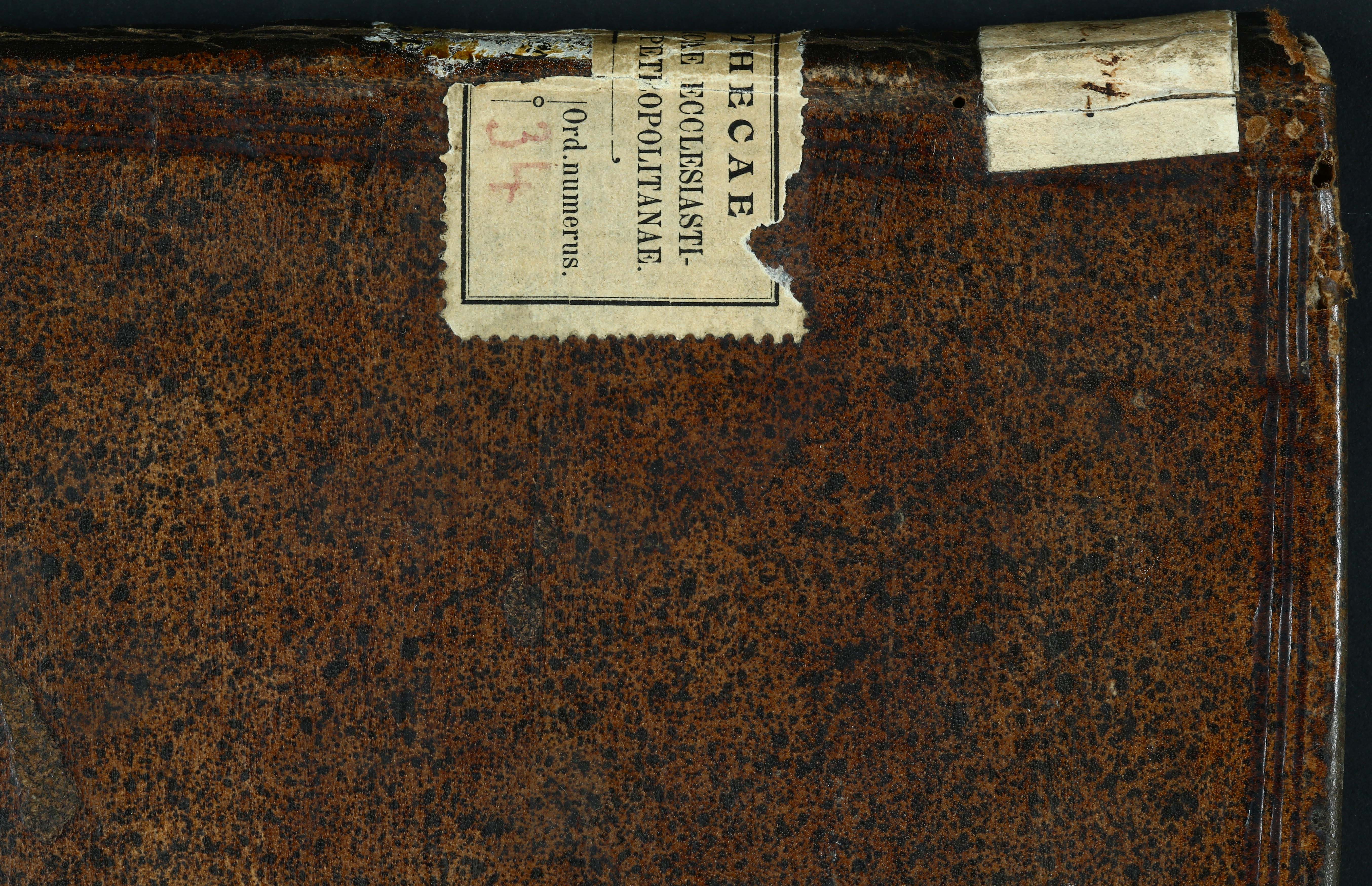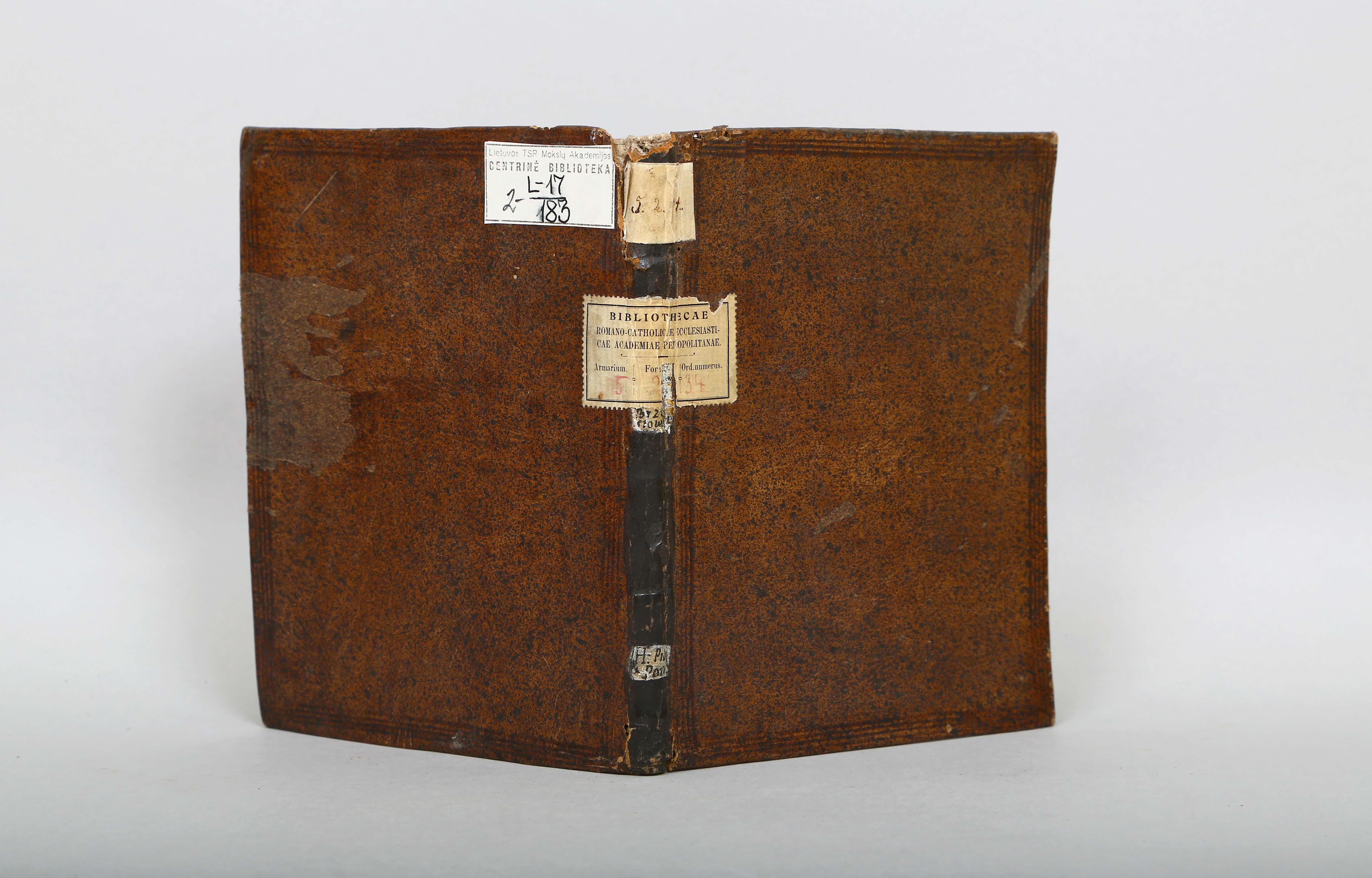 Įrišas knygos [Rodkiewicz, Koncess Sylwester. Opus miserentis Dei, sive historia de origine, meritis et sanctitate pontificii [...]. Vilnae : typis Academicis Societatis Iesu, 1699.]