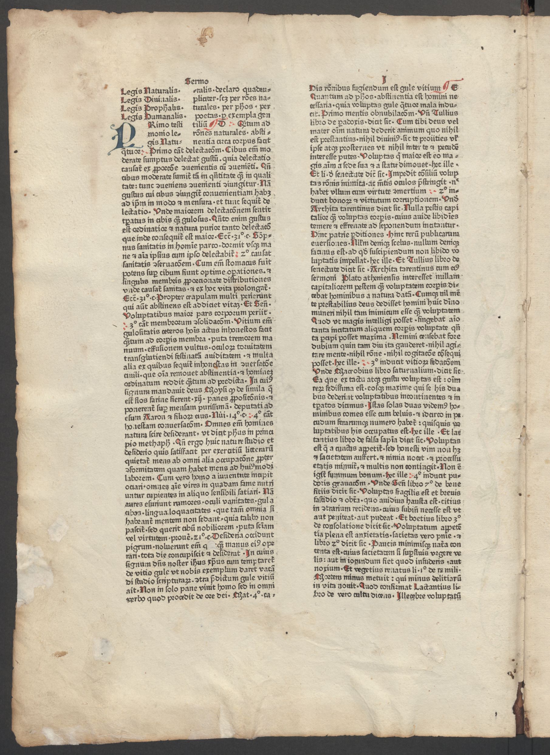 Sermones quadragesimales de legibus dicti, Ulme [Ulm] : per Johanne[m] Zainer, ad septimum Idus Marcias anni Millesimi quadringentesimi septuagesimi octavi [1478 03 09], 379 nenumeruoti lapai : inicialai ; 2° (40 cm).
