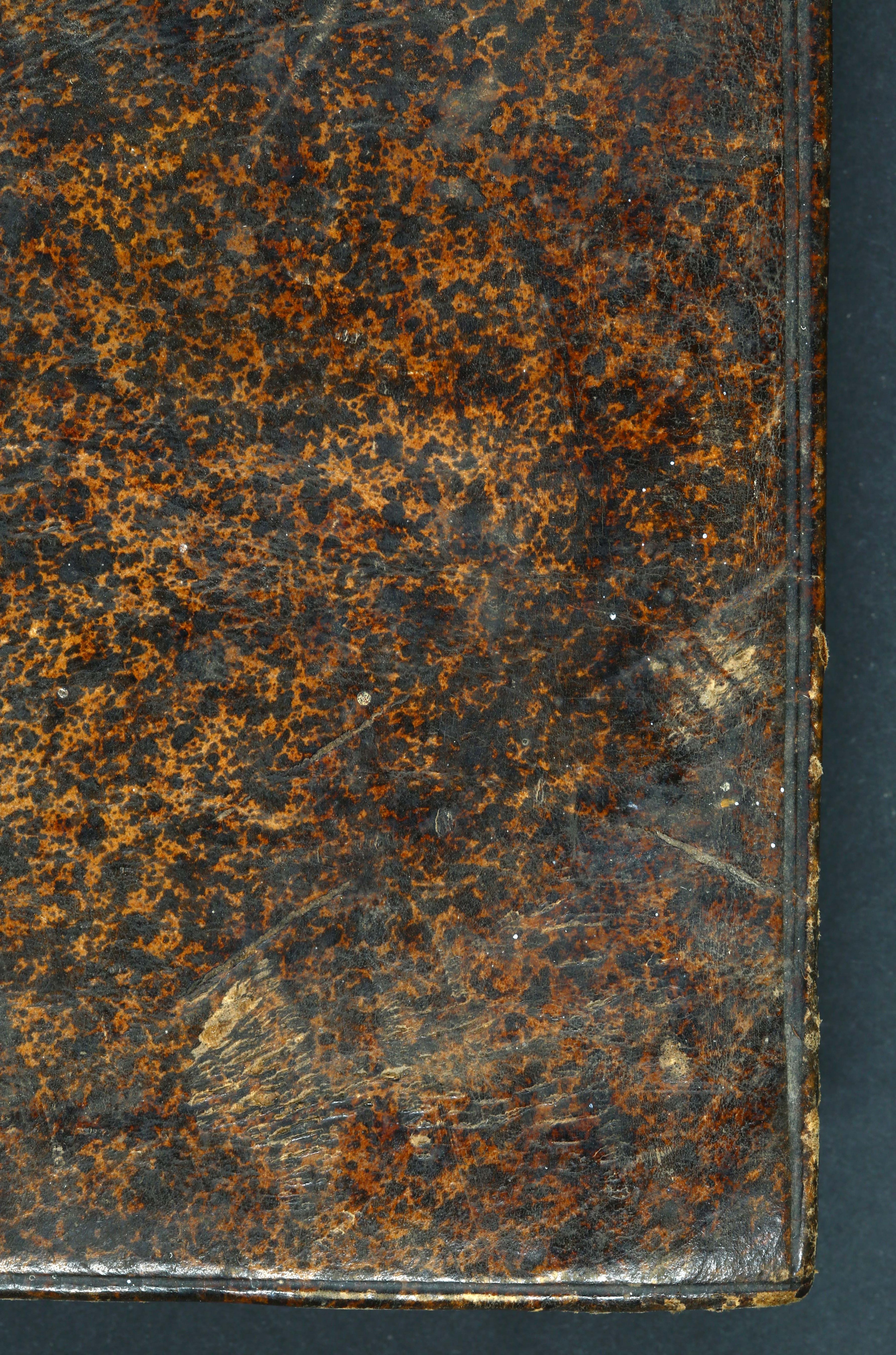 Įrišas: vientisas. Medžiaga: jautenos oda. Viršelio dekoro technika – marginimas taškymo metodu. Įspaudas: viršelio kraštinėse – vieno brėžio apvadas, ties viršelio nugarėle – trys brėžiai.