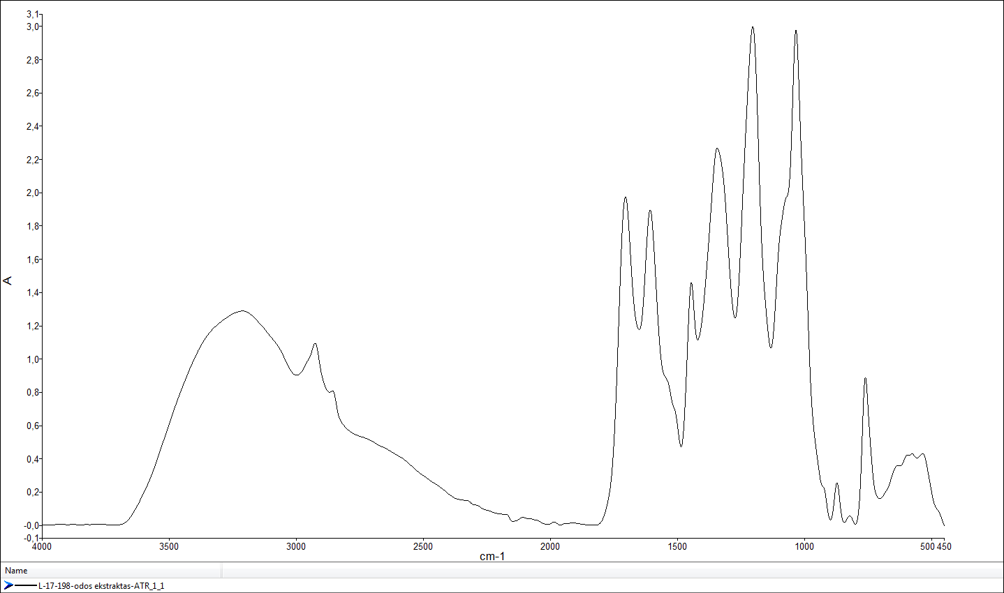 Mikrocheminiai ir instrumentiniai tyrimai: pH - 4,0; Geležies chlorido testas - teigiamas; Vanilino testas - neigiamas; Nitritinės rūgšties testas - teigiamas; Rodanino testas - neigiamas; Taninų klasė - Hidrolizuojami taninai; ATR-FTIR spektroskopija - Elago taninai.