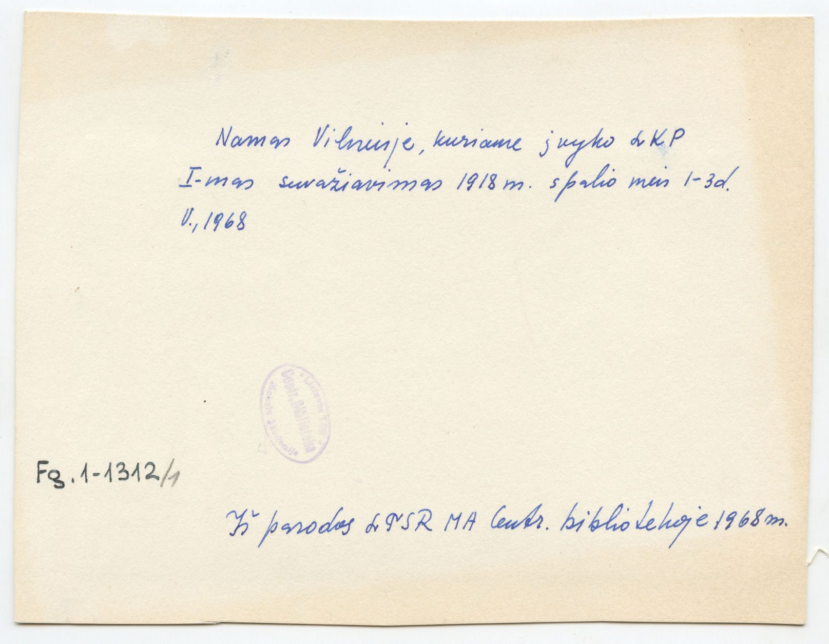 [Namas Nr. 9 P. Cvirkos skersgatvyje, Vilniuje]. [Vilnius] : [s.n.], [1969], 3 fotogr.