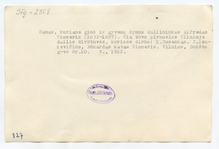 [Namas Nr. 10 Bokšto gatvėje, Vilniuje], [Vilnius] : [s.n.], 1962, 1 fotogr. ; 17.4 x 11.5 cm.