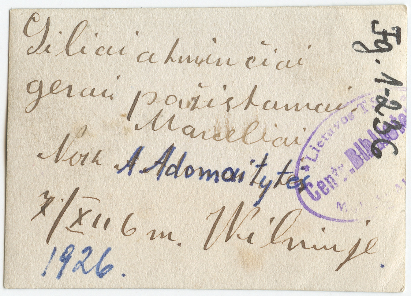 | dc.relation.isformatof | Panelės A.Adomaitytės portretas, Vilnius : [leidėjas nenustatytas], [1926], 1 fotografija : tonuota ; 5.5 x 4 cm. | lt |