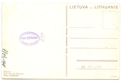 Šiauliai = Une vue de Šiauliai / foto J. Buračas, Kaunas : Gediminas Orentas, 1938, 1 atvirukas ; 14 x 9 cm.