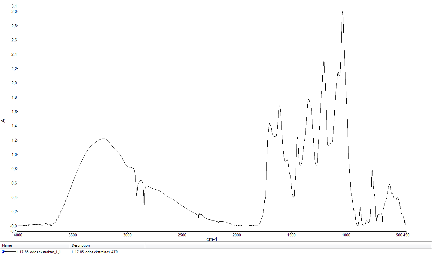 Mikrocheminiai ir instrumentiniai tyrimai: pH - 3,9; Geležies chlorido testas - teigiamas; Vanilino testas - neigiamas; Nitritinės rūgšties testas - neigiamas; Rodanino testas - teigiamas; Taninų klasė - Hidrolizuojami taninai; ATR-FTIR spektroskopija - Galo taninai.