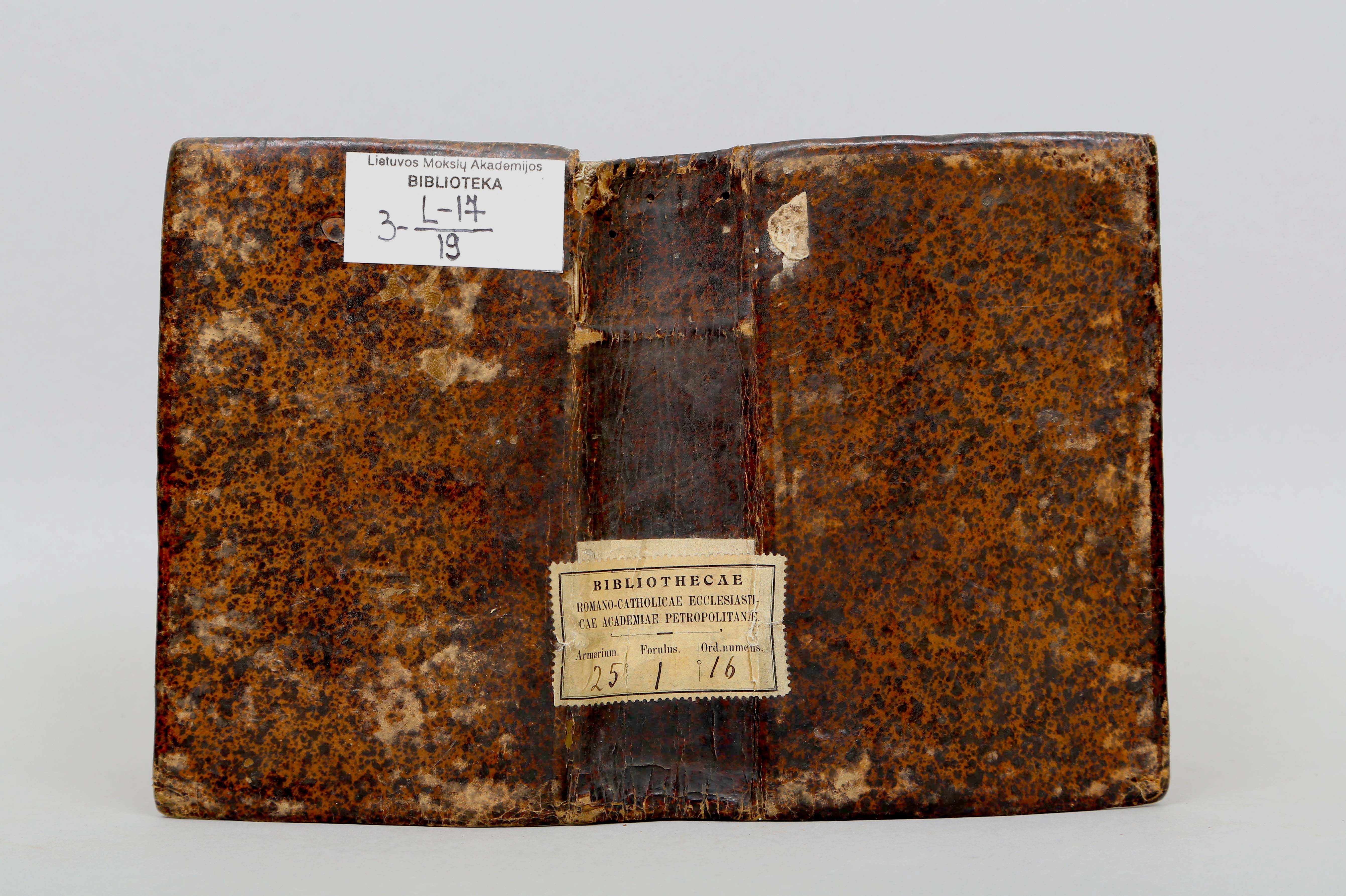 Nuosavybės ženklai: Collegii Grodnensis S.Jesu [įrašas]; Bibliothecae Romano-catholicae ecclesiasticae Academiae Petropolitanae [lipdė].