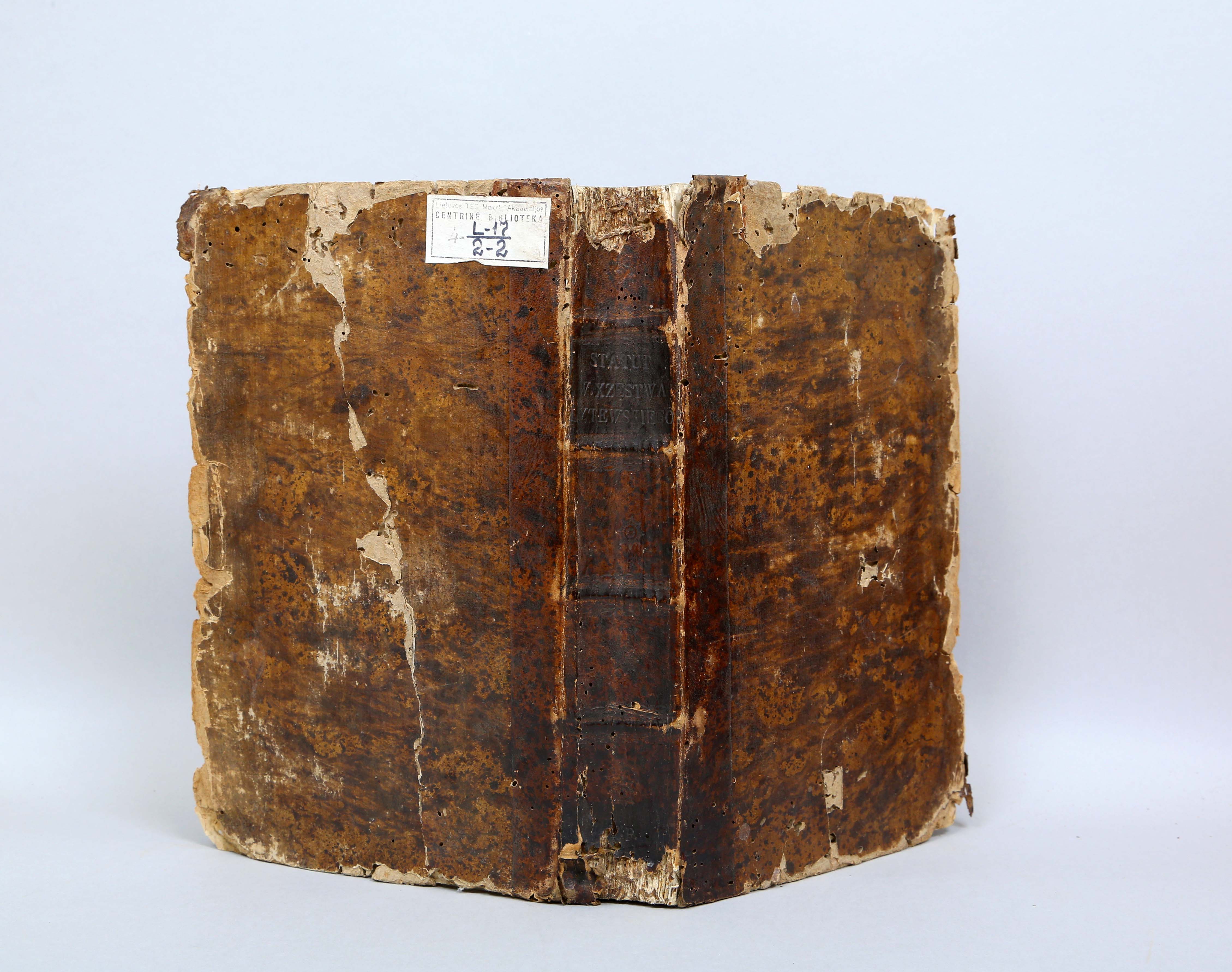 Įrišas knygos [Statut Wielkiego Xięstwa Litewskiego, naprzod, za naiśnieyszego [...]. W Wilnie : w drukarni Akademiey Societatis Iesu, 1693–[1694].]