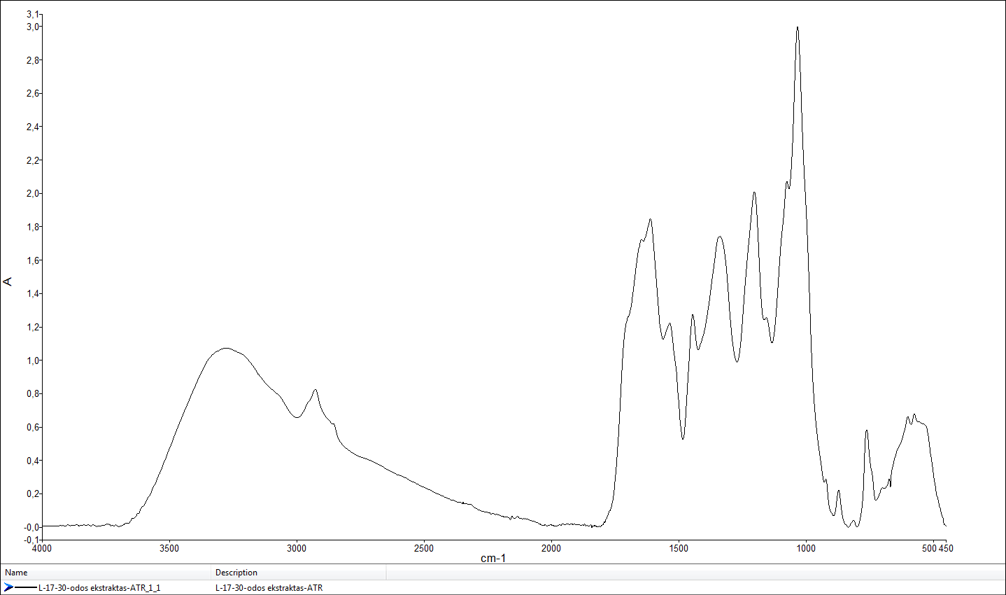 Mikrocheminiai ir instrumentiniai tyrimai: pH - 4,8; Geležies chlorido testas - teigiamas; Vanilino testas - neigiamas; Nitritinės rūgšties testas - neigiamas; Rodanino testas - teigiamas; Taninų klasė - Hidrolizuojami taninai; ATR-FTIR spektroskopija - Galo taninai.