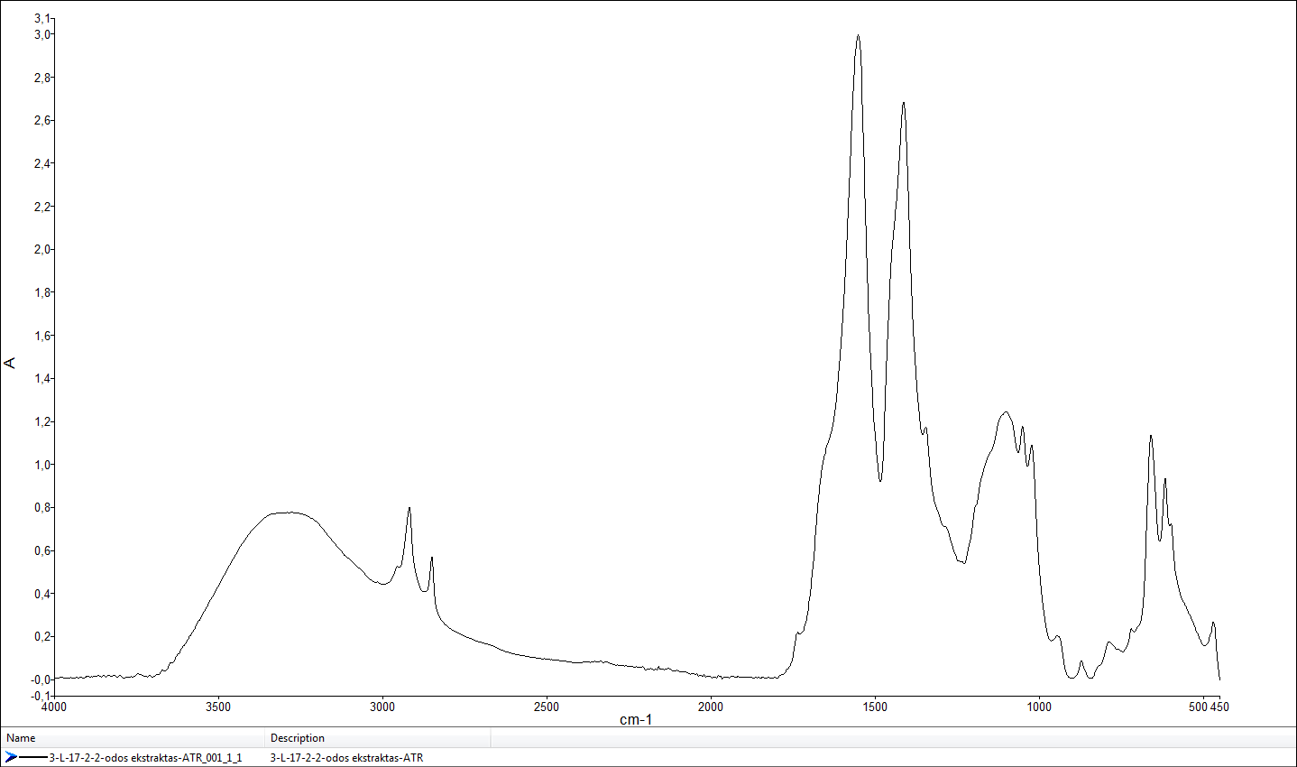 Mikrocheminiai ir instrumentiniai tyrimai: pH - 5,6; Geležies chlorido testas - teigiamas; Vanilino testas - teigiamas; Nitritinės rūgšties testas - neigiamas; Rodanino testas - teigiamas; Taninų klasė - Hidrolizuojami ir kondensuoti taninai; ATR-FTIR spektroskopija - Galo ir kondensuoti taninai.