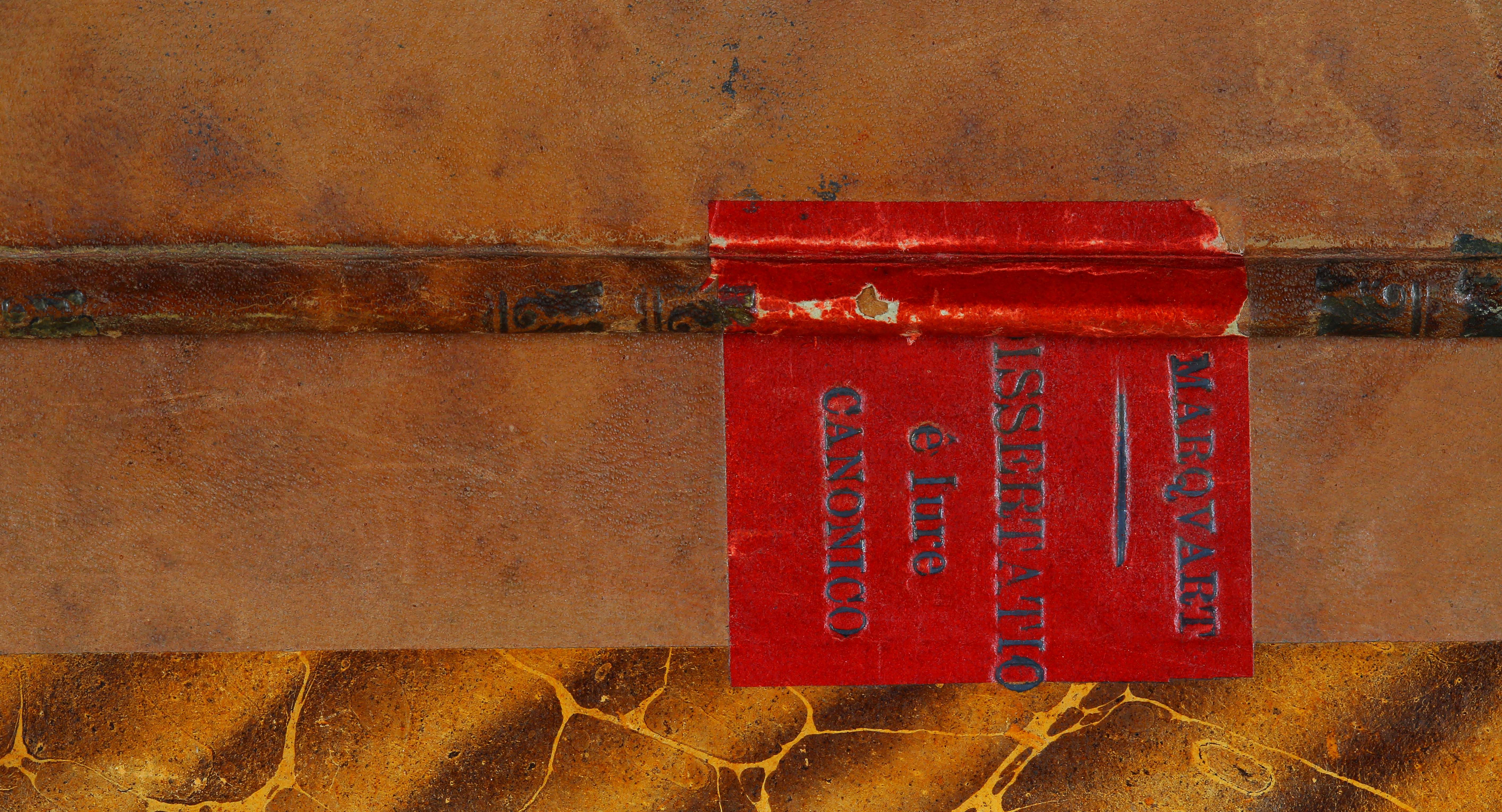 Įrišas knygos [Marquart, Andreas. Dissertatio iuridica e iure canonico, civili et regio Poloniae [...]. Vilnae [Vilnius] : typis Academicis Soc. Jesu, anno 1647. die [22] Iunii.]