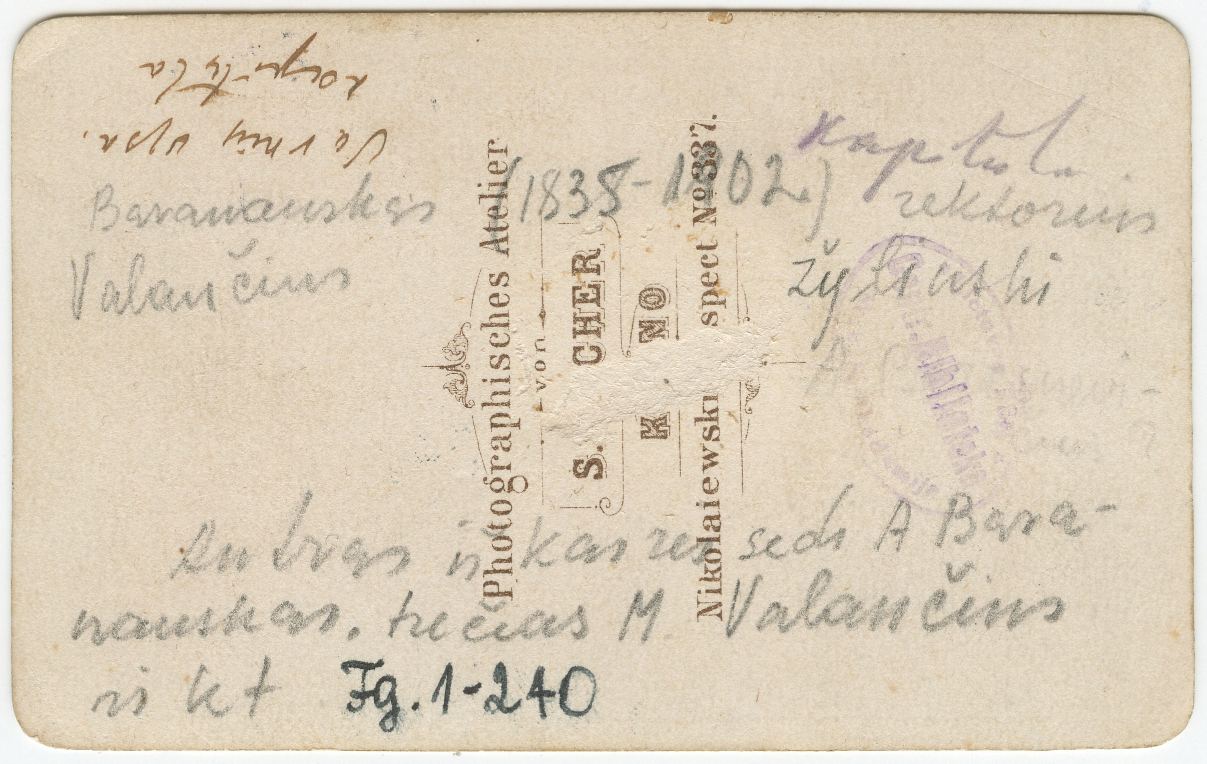 Varnių vyskupijos kapitula : [grupinė nuotrauka] / [fot.] S. Bucher, Kowno : photographisches Atelier S.Bucher, [1865-1868], 1 fotografija : tonuota ; 5.7 x 7.7 ; 6.2 x 10 cm.