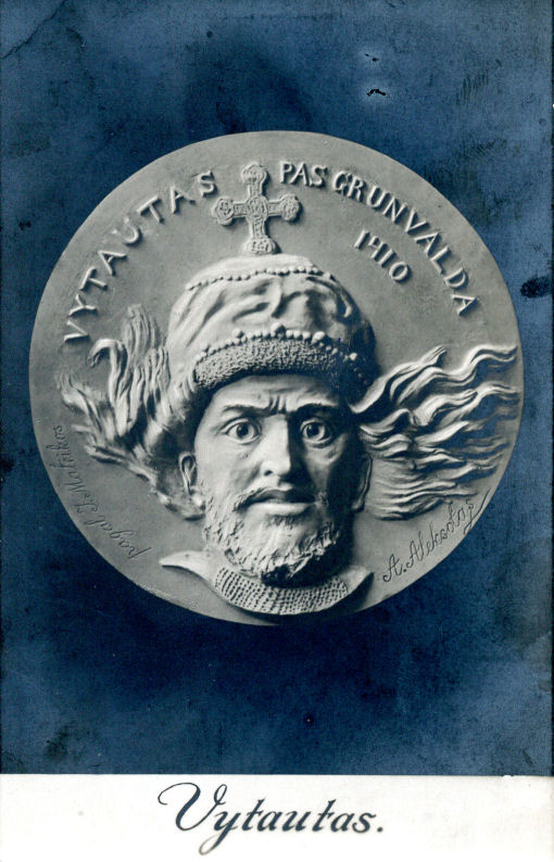 Vytautas : Vytautas pas Grunvalda 1410 / [dailininkas] A. Aleksotas [i.e. A. Aleksandravičius]. Kaunas : išleido O. Vitkauskytės knygynas, 1913.