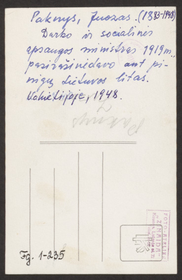 Juozas Paknys : fotoatelje „Zinaida“. Kaunas : foto-atelje „Zinaida“, [1931-1940], 1 fotografija