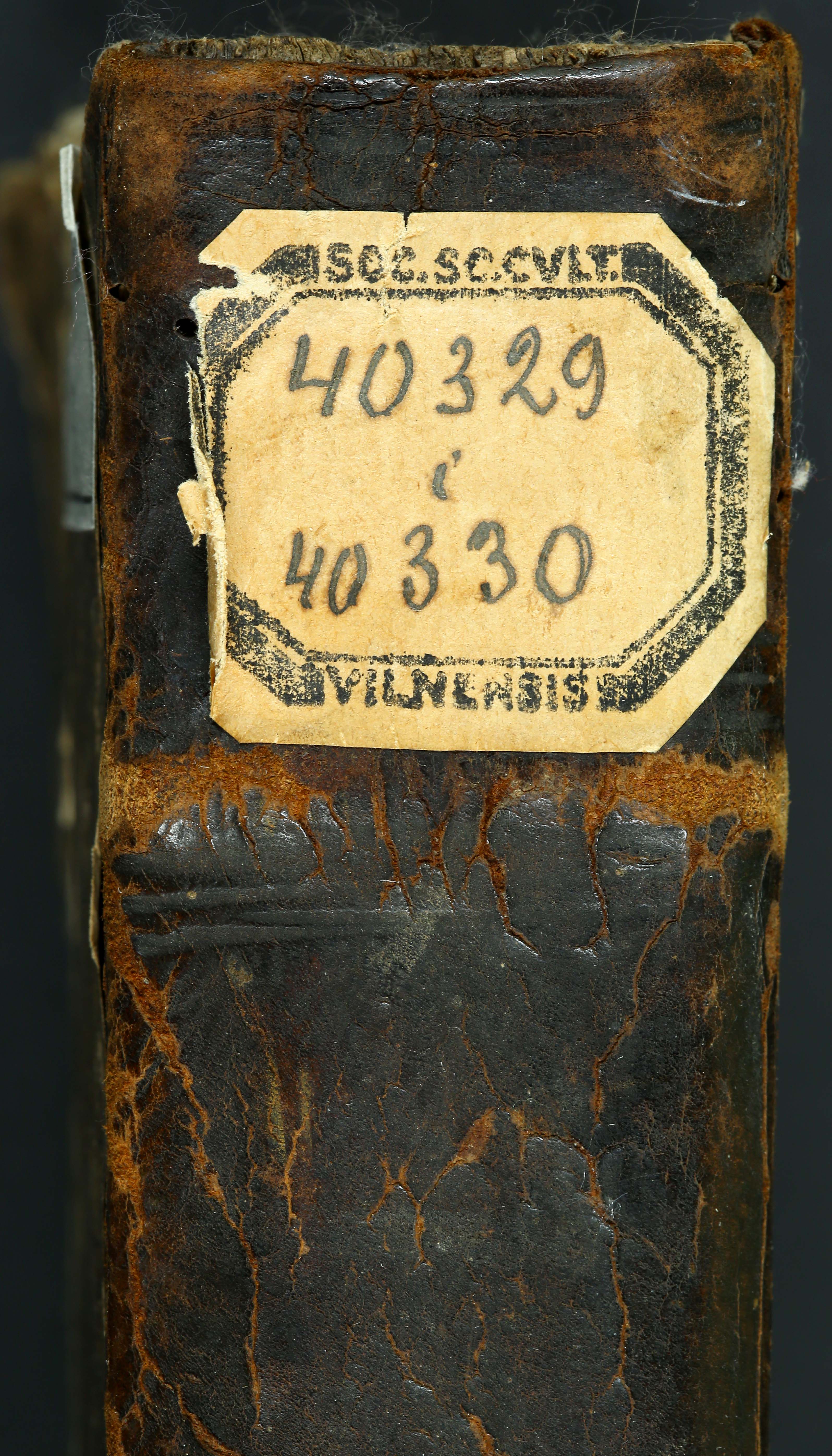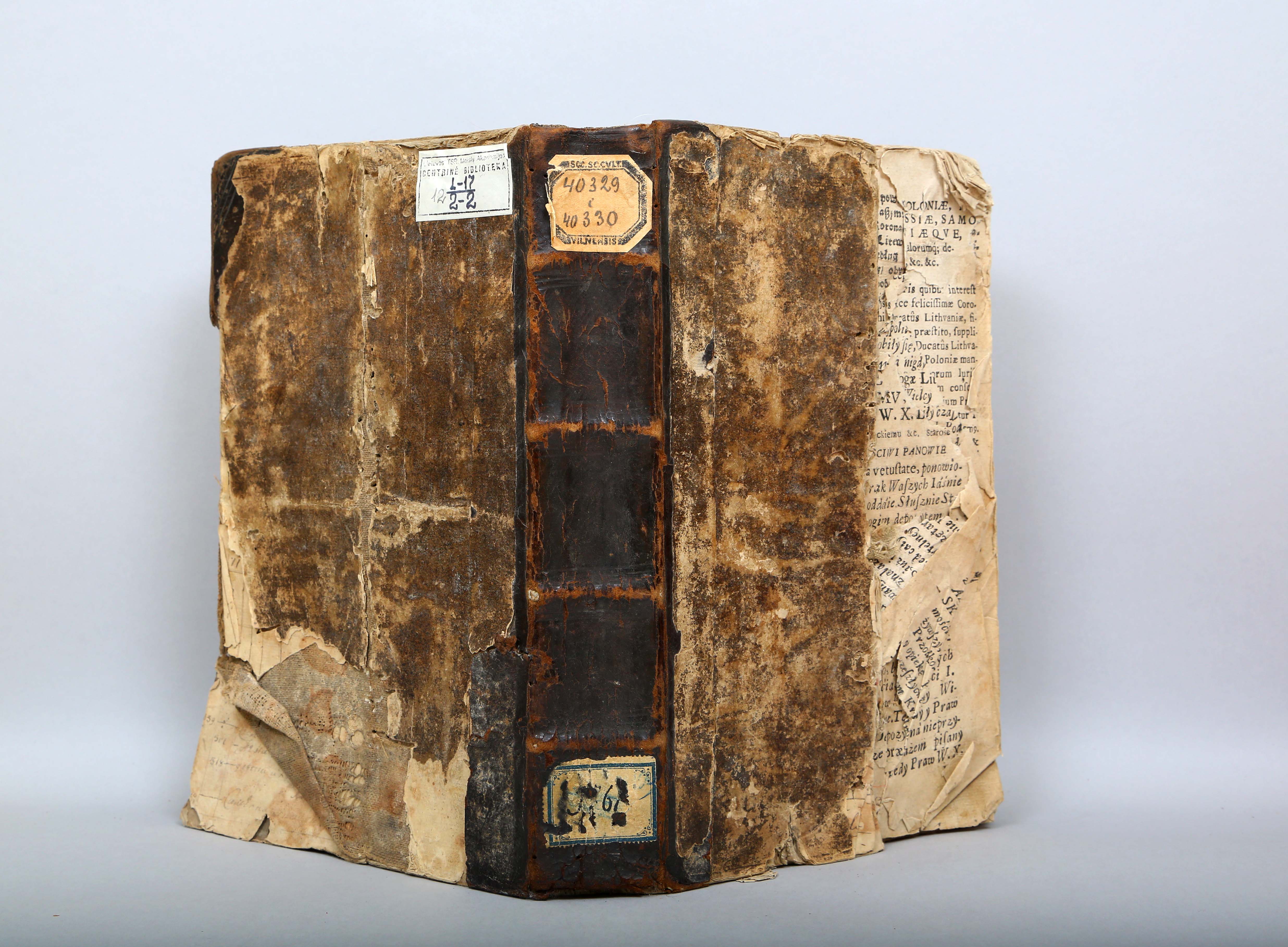 Įrišas knygos [Statut Wielkiego Xięstwa Litewskiego, naprzod, za naiśnieyszego [...]. W Wilnie : w drukarni Akademiey Societatis Iesu, 1693–[1694].]