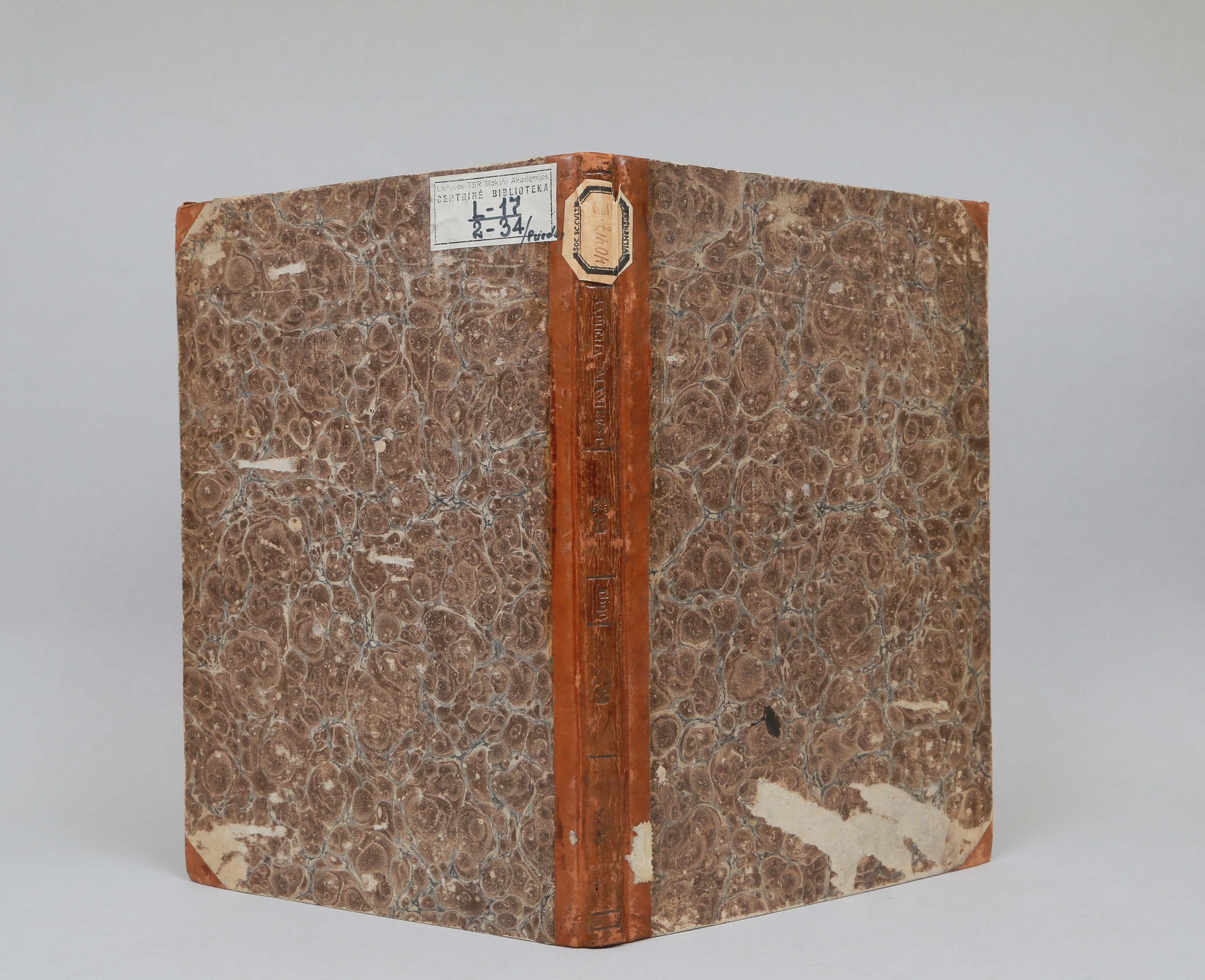 - Viršelio nugarėlės fragmentas su antraštiniais duomenimis / Spine fragment with title data