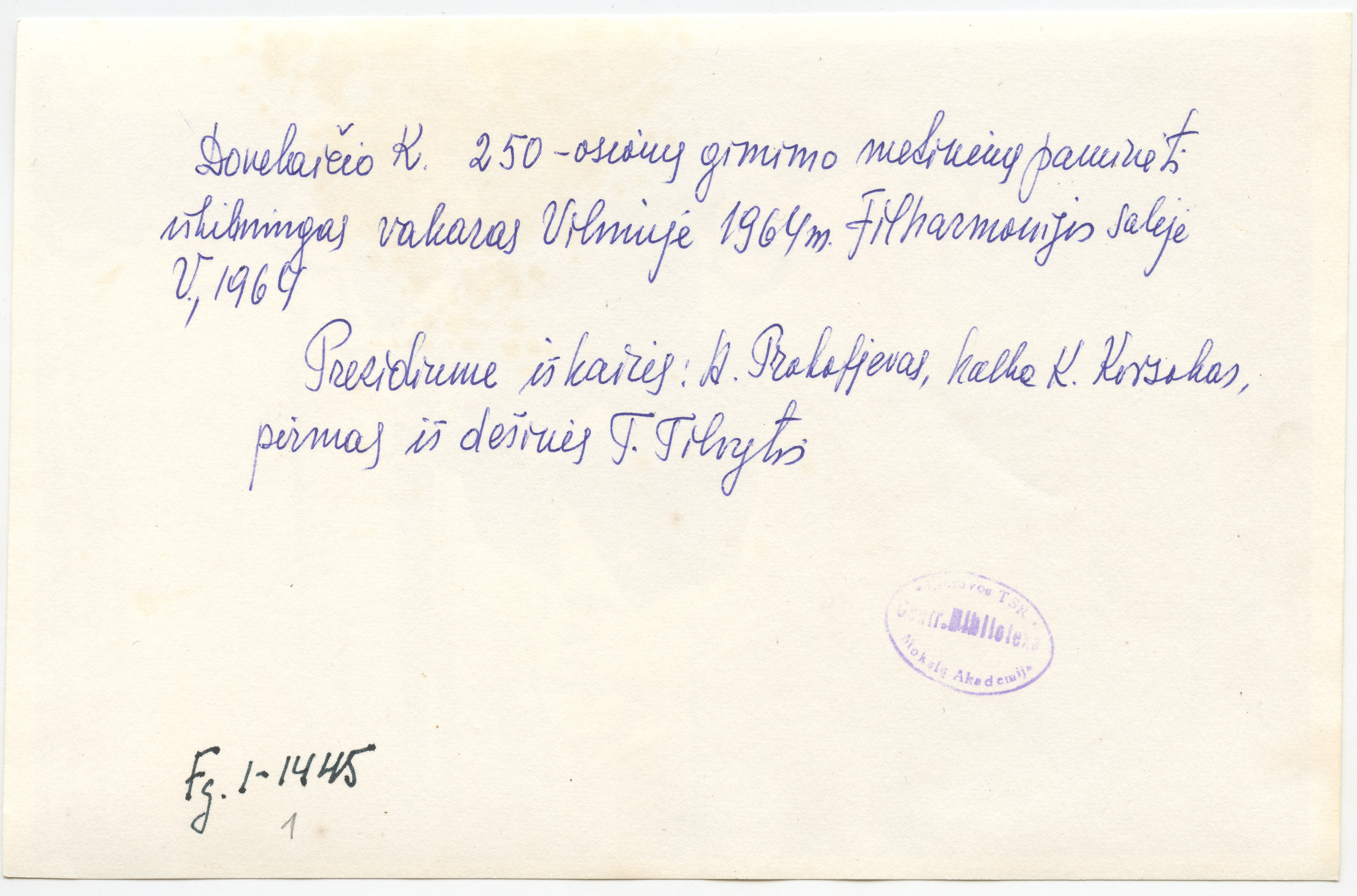 Kristijono Donelaičio 250-osios gimimo metinės : [iškilmingas minėjimas Vilniaus Filharmonijos salėje ir paroda Respublikinėje bibliotekoje], [Vilnius] : [leidėjas nenustatytas], [1964], 5 fotografijos : juodai-baltos ; 12 x 18 ; 18.3 x 24 cm.