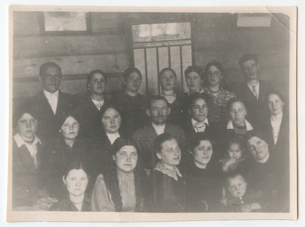 Nuotraukose: Onos Pečiulienės portretai, sūnų portretinė nuotrauka, Ona Pečiulienė su vyru, su bendradarbiais ir studentais, lauko praktikoje Žuvinte.