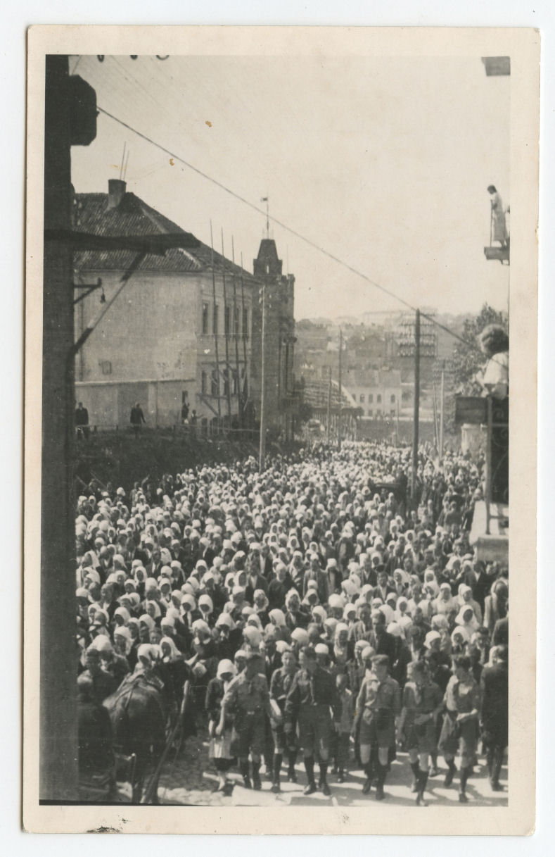 [Lietuviai skautai atlieka policijos funkciją, saugodami eiseną Vilniaus miesto gatvėse]. [Vilnius] : [s.n.], [1938], 1 fotogr.