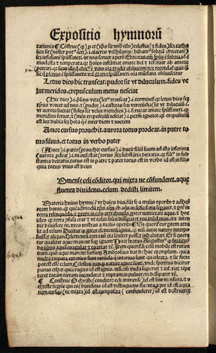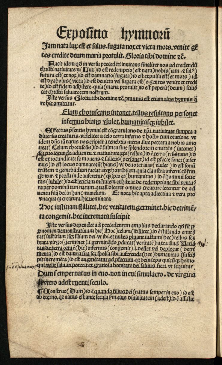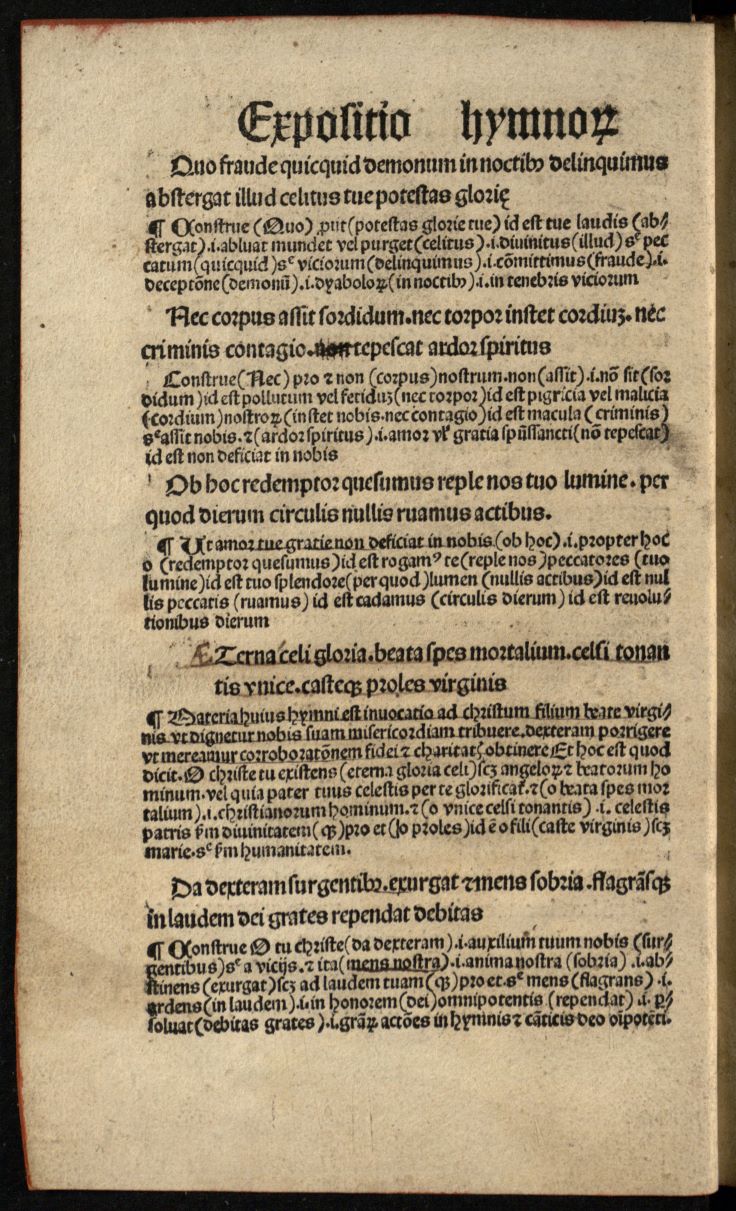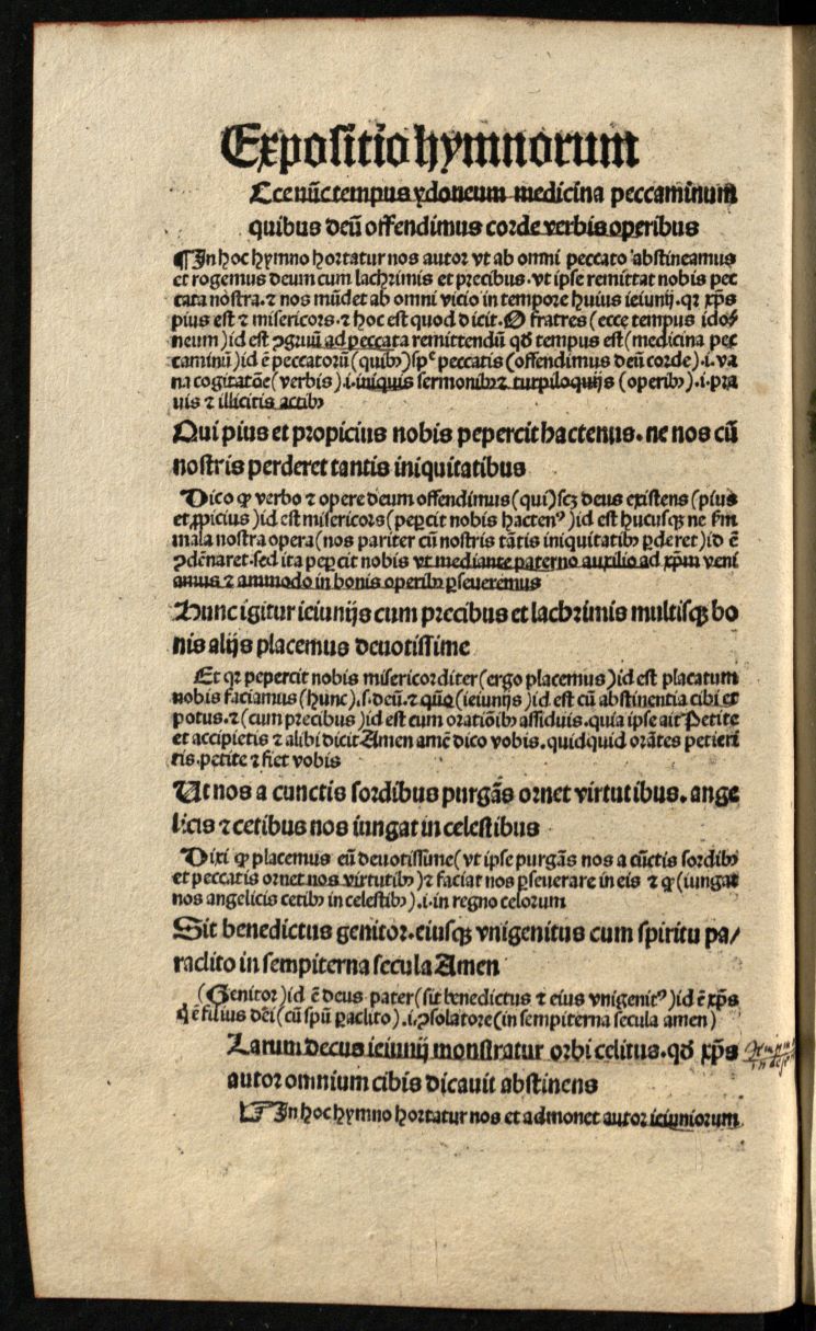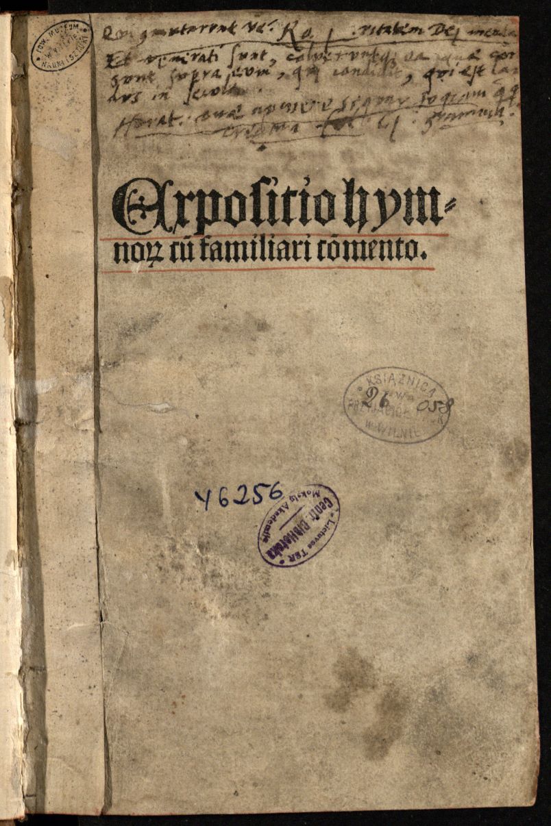 Expositio hymnorum cum familiari commento, Colonia [i.e. Köln] : p[er] Henricum Quentell, M.cccc.xcix. decima die Martii [1499 03 10], 1 nenumeruotas lapas, 76 lapai, 1 nenumeruotas lapas ; 4° (19 cm).