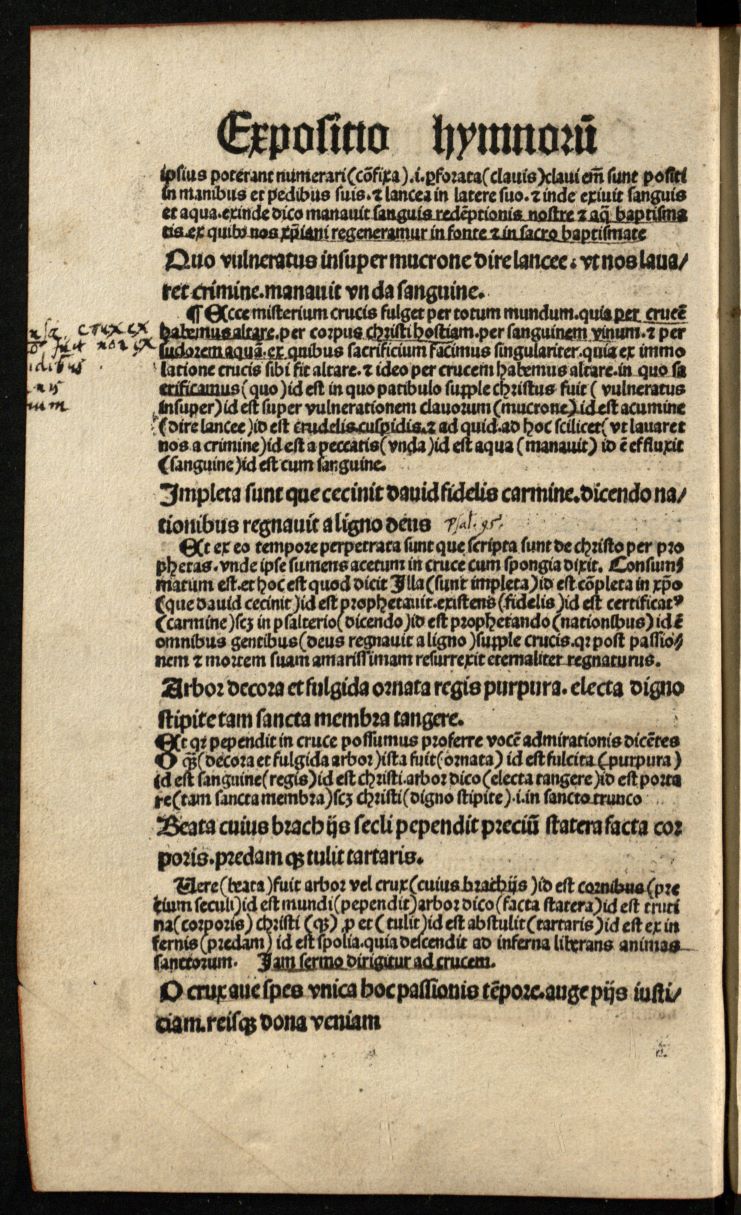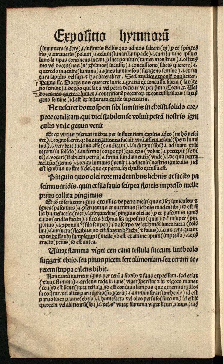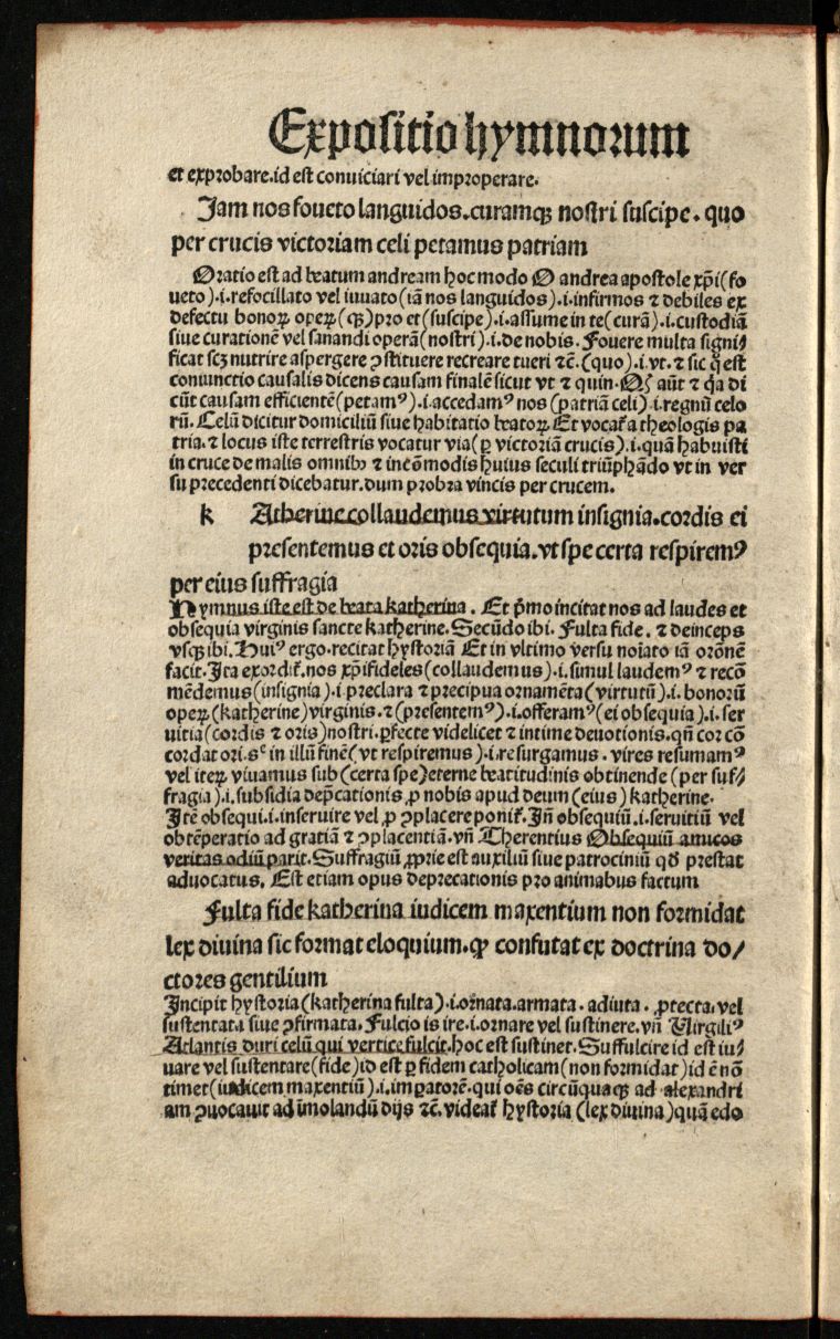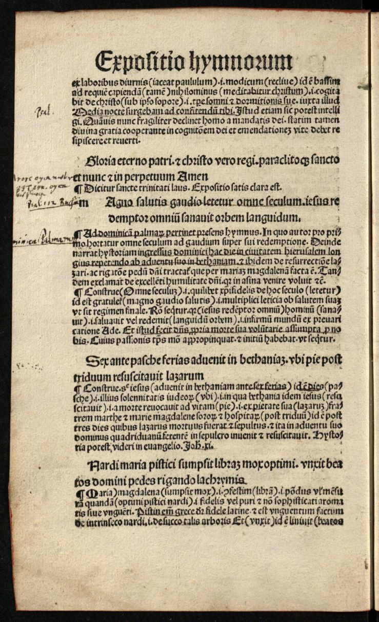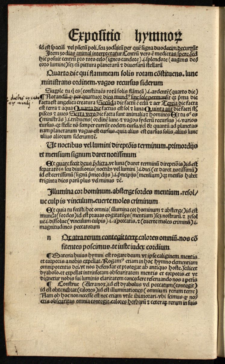 Expositio hymnorum cum familiari commento, Colonia [i.e. Köln] : p[er] Henricum Quentell, M.cccc.xcix. decima die Martii [1499 03 10], 1 nenumeruotas lapas, 76 lapai, 1 nenumeruotas lapas ; 4° (19 cm).